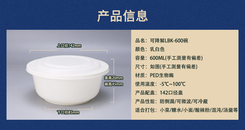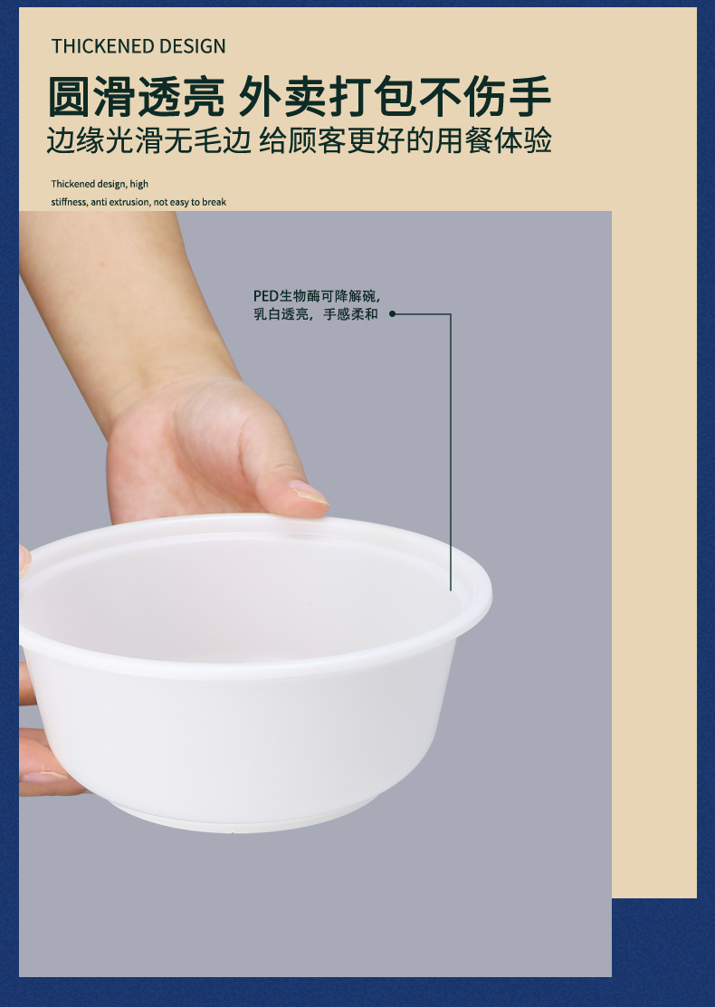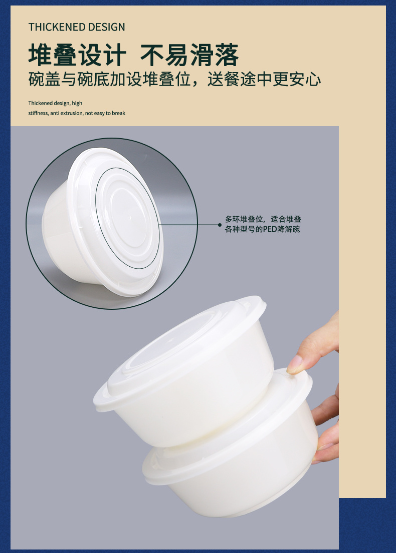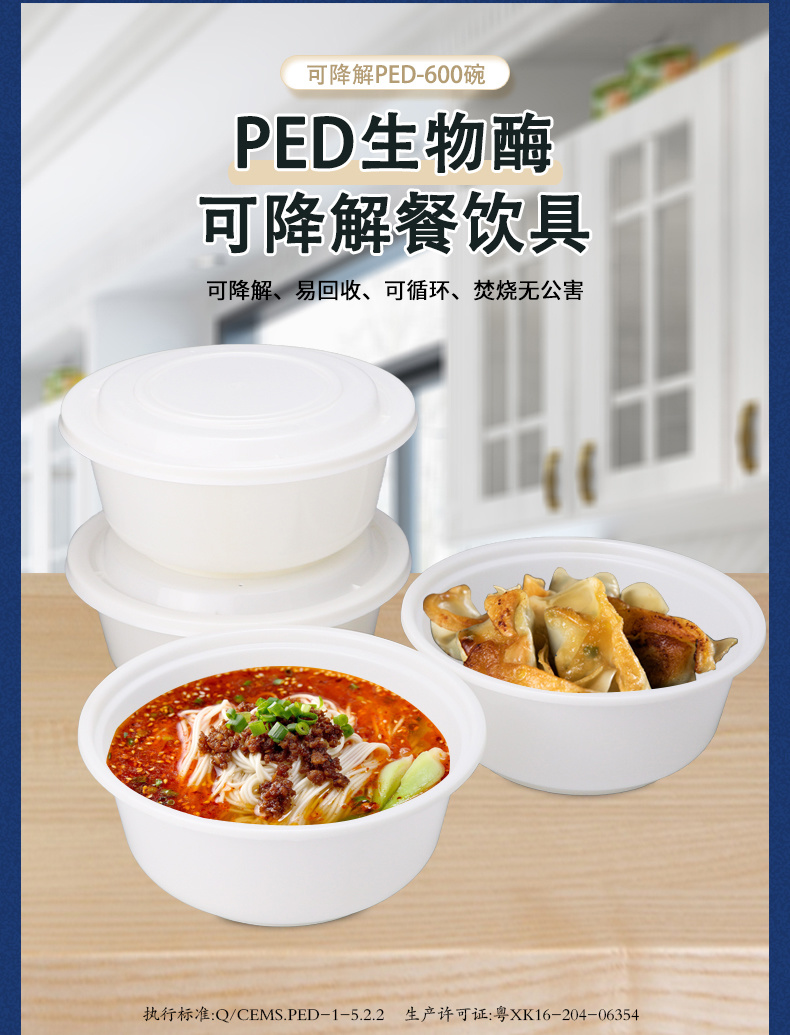 PED生物可降解丰园PED-500圆碗一次性餐盒外卖打包碗炒菜卤味便当盒子环保碗