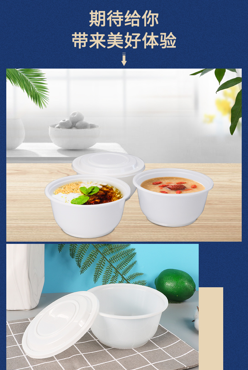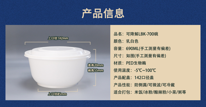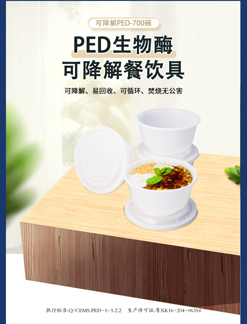 PED生物可降解丰园PED-600圆碗一次性餐盒外卖打包碗炒菜卤味便当盒子环保碗