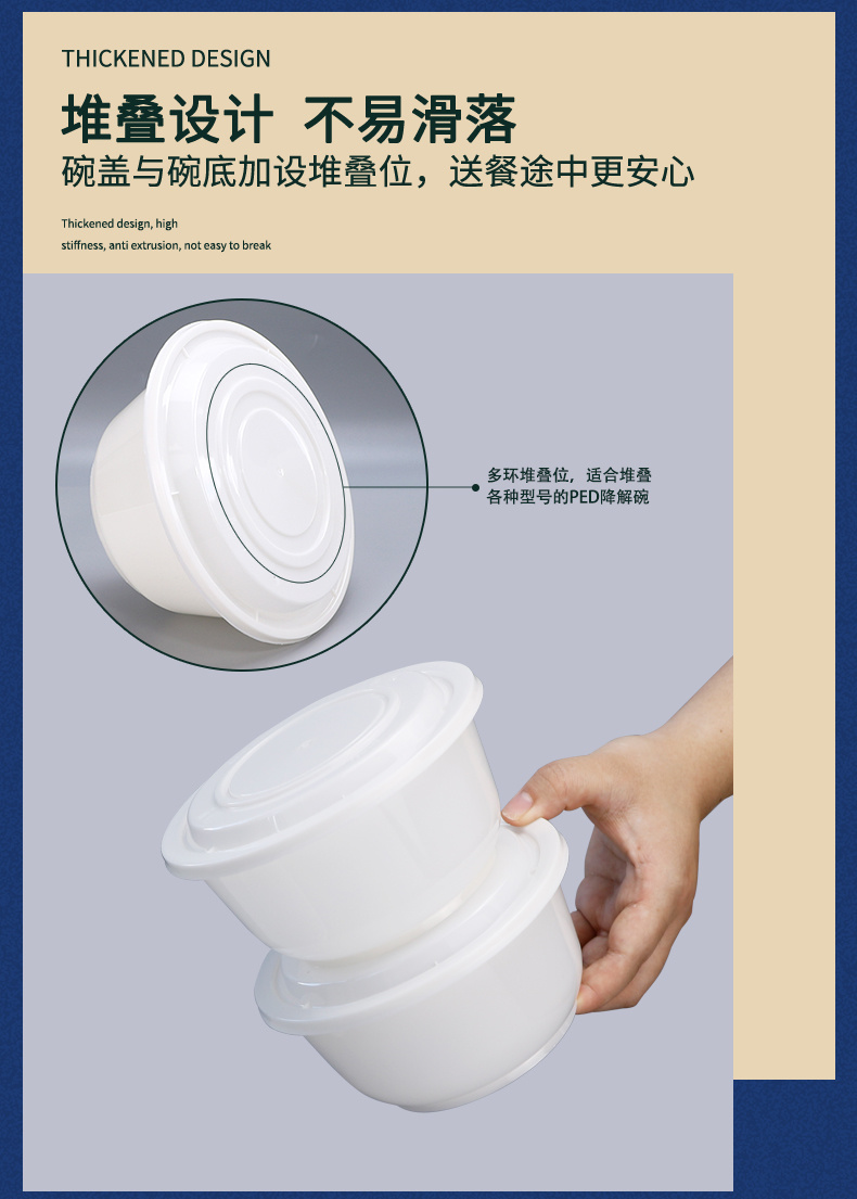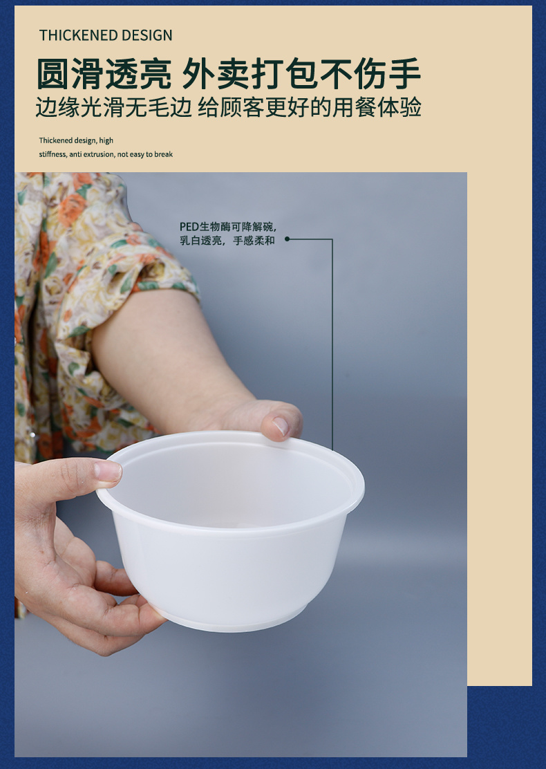 PED生物可降解丰园PED-850圆碗一次性餐盒外卖打包碗炒菜卤味便当盒子环保碗