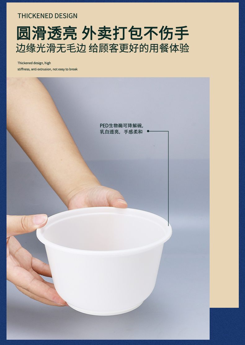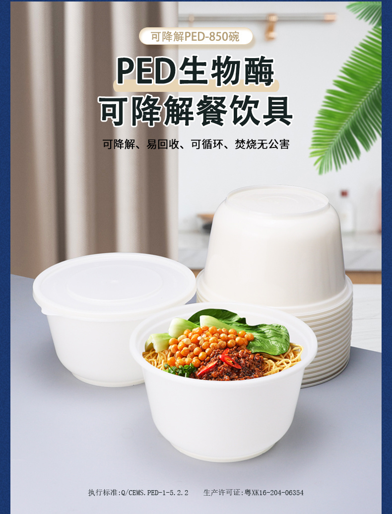 PED生物可降解丰园PED-750圆碗一次性餐盒外卖打包碗炒菜卤味便当盒子环保碗