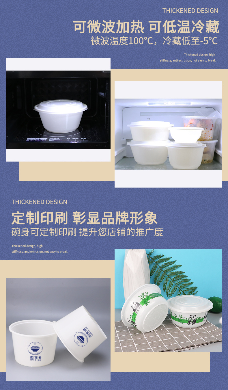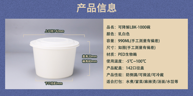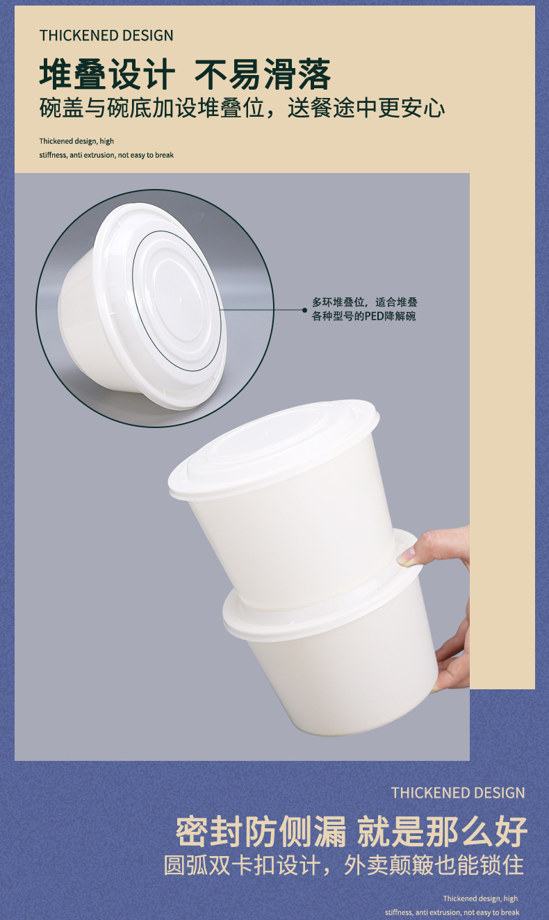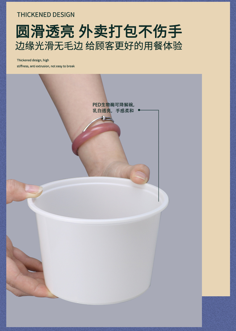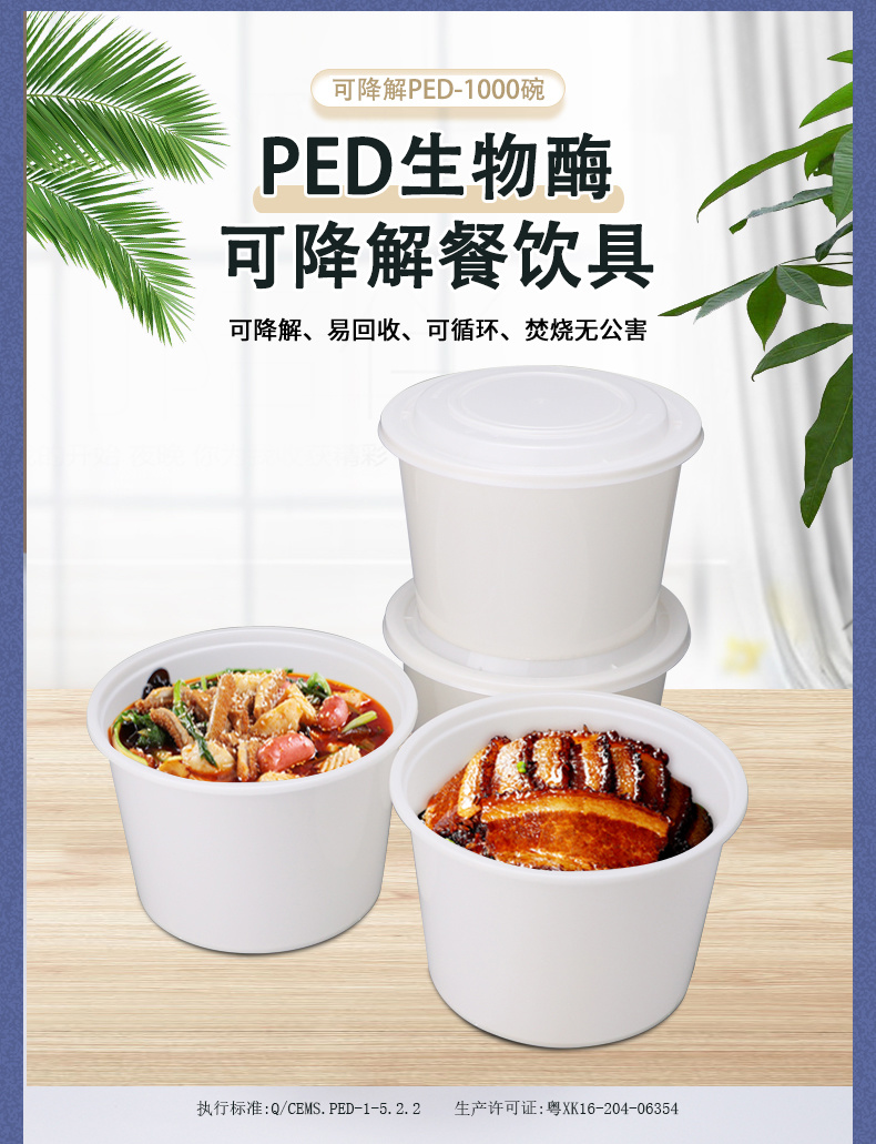 PED生物可降解丰园PED-999圆碗一次性餐盒外卖打包碗炒菜卤味便当盒子环保碗