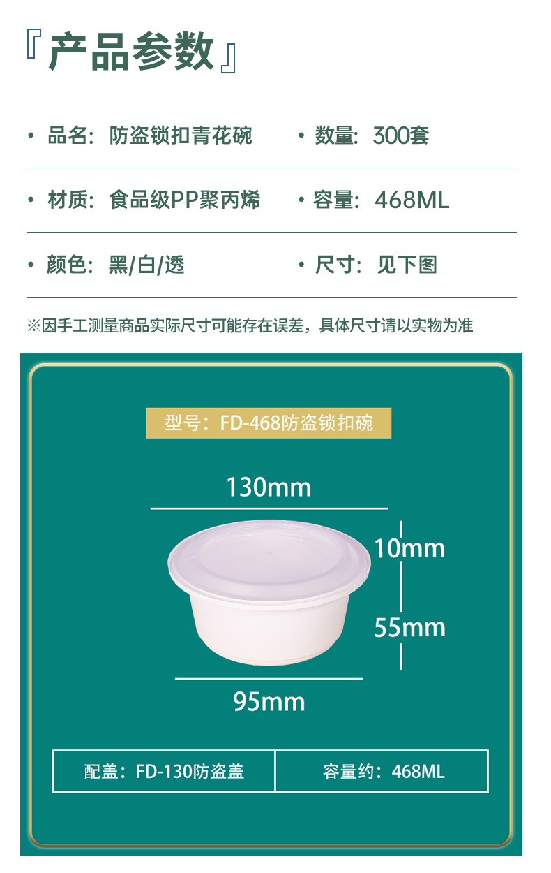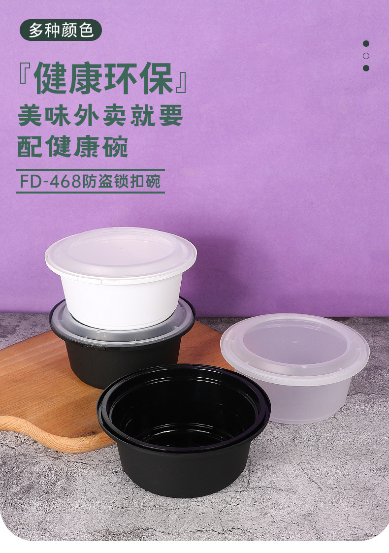 FD-568防盗锁扣一次性餐盒快餐饭盒包装盒子塑料碗圆形外卖打包盒便当盒