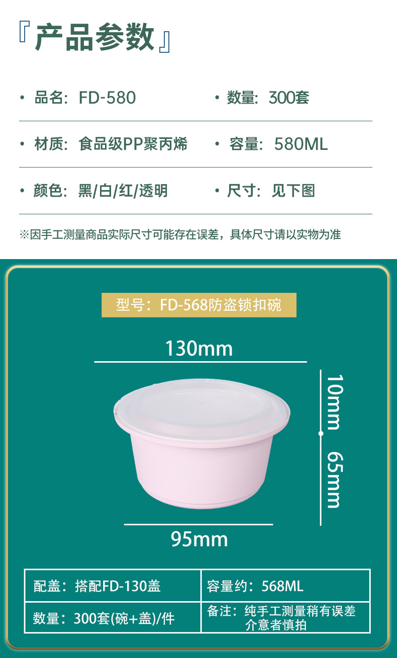 FD-468防盗锁扣一次性餐盒快餐饭盒包装盒子塑料碗圆形外卖打包盒便当盒