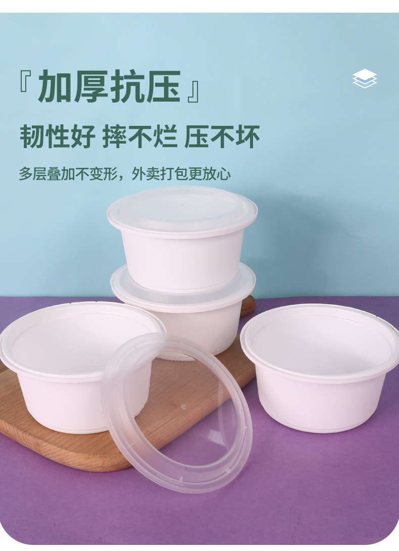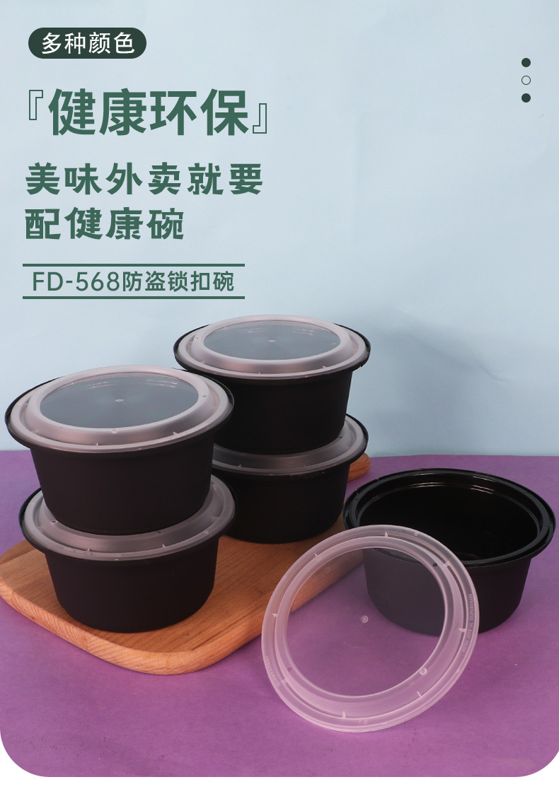 FD-1560防盗锁扣一次性餐盒快餐饭盒包装盒子塑料碗圆形外卖打包盒便当盒