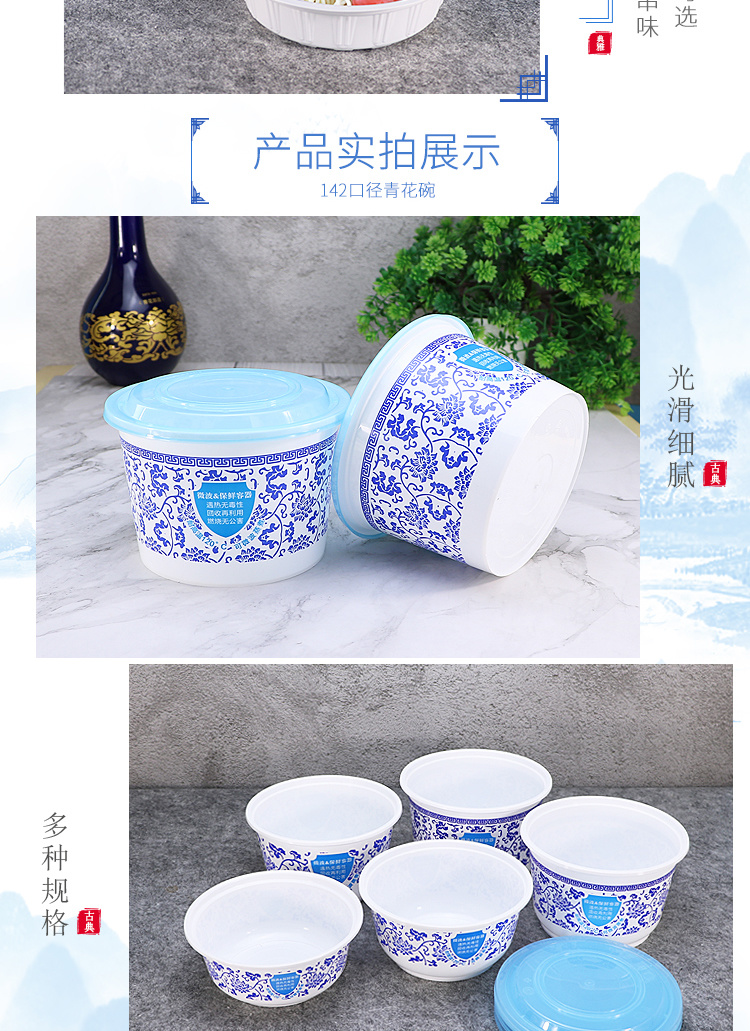 绿保康LBK-700青花碗一次性餐盒便当盒快餐外卖打包盒子加厚圆形塑料饭碗商用家用批发