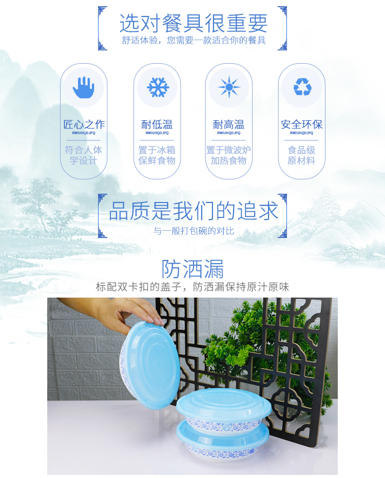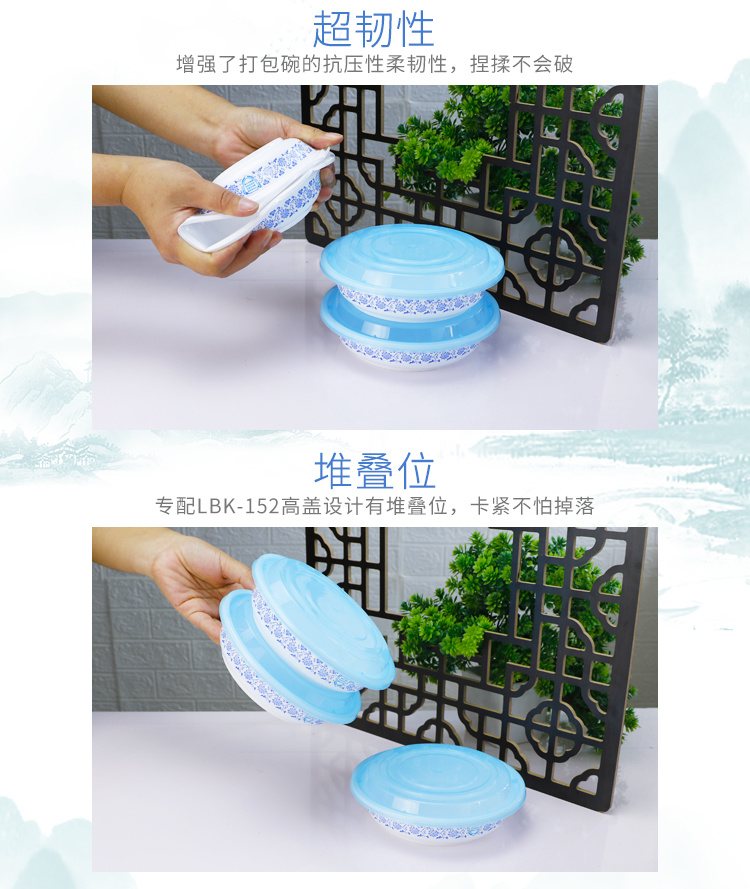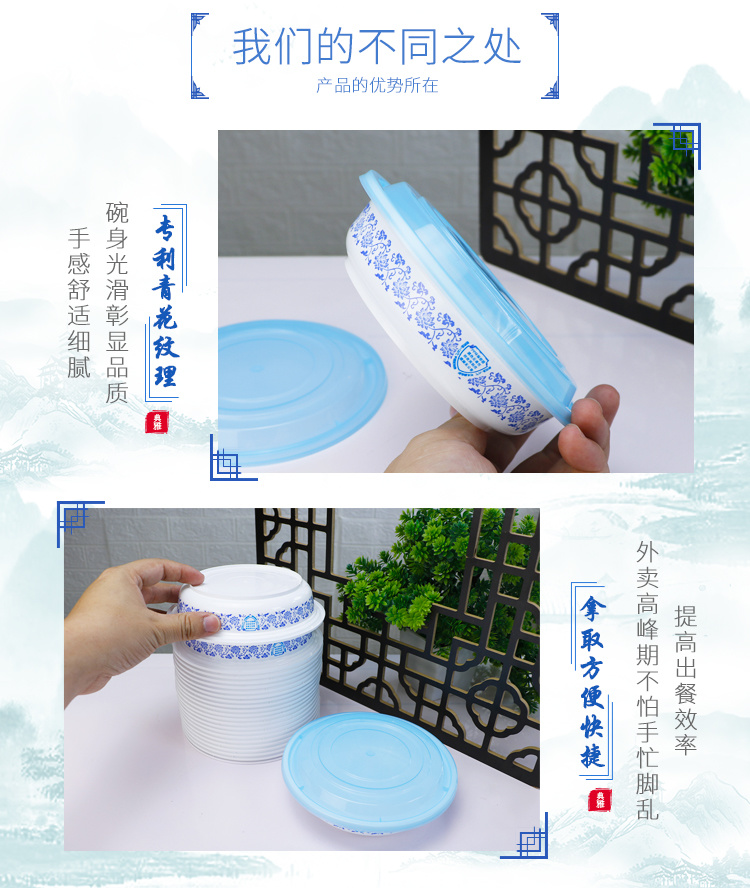 绿保康LBK-1000青花碗一次性餐盒便当盒快餐外卖打包盒子加厚圆形塑料饭碗商用家用批发