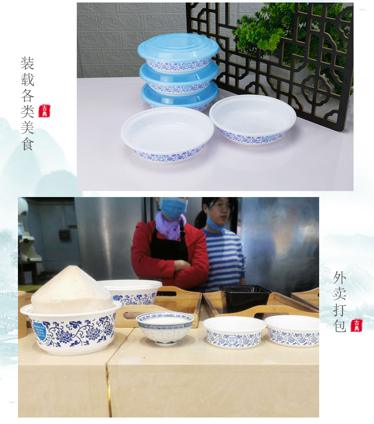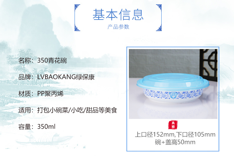 绿保康LBK-Y450青花碗一次性餐盒便当盒快餐外卖打包盒子加厚圆形塑料饭碗商用家用批发