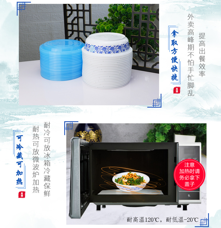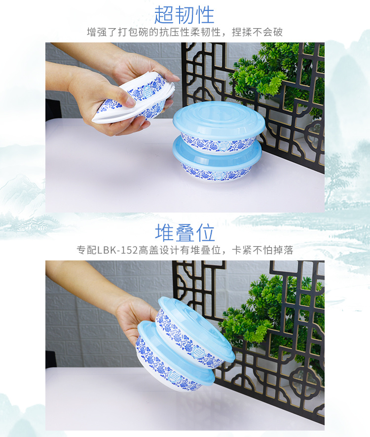 绿保康LBK-Y950青花碗一次性餐盒便当盒快餐外卖打包盒子加厚圆形塑料饭碗商用家用批发