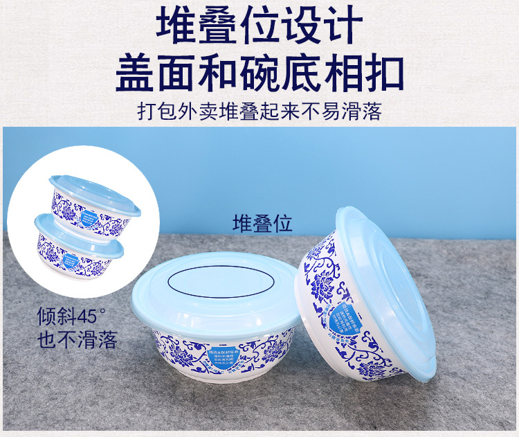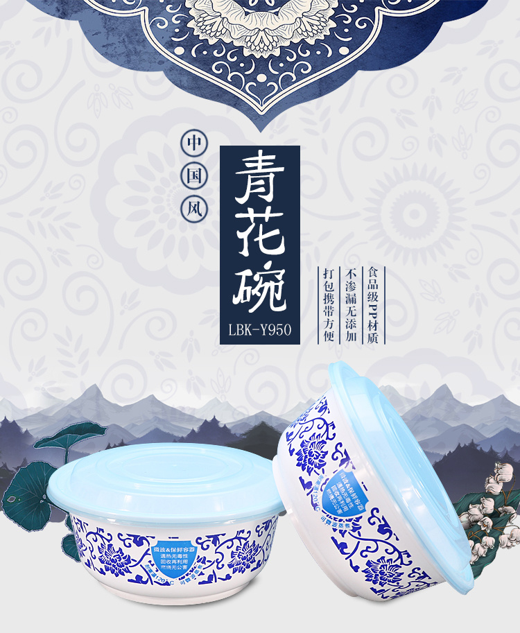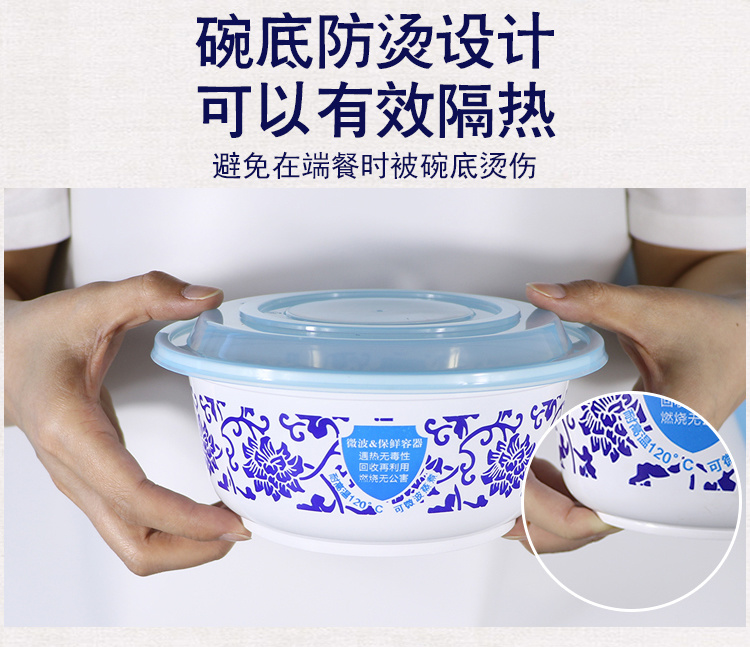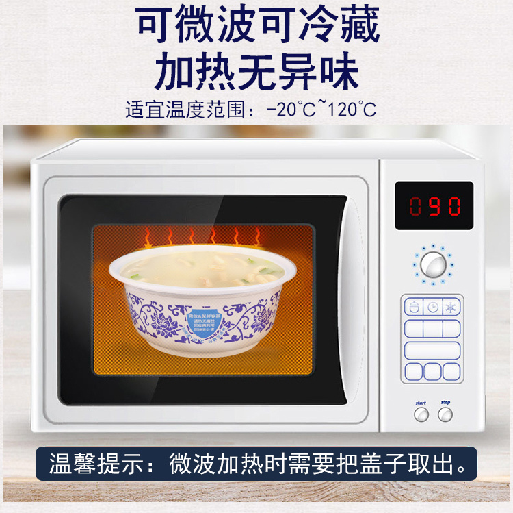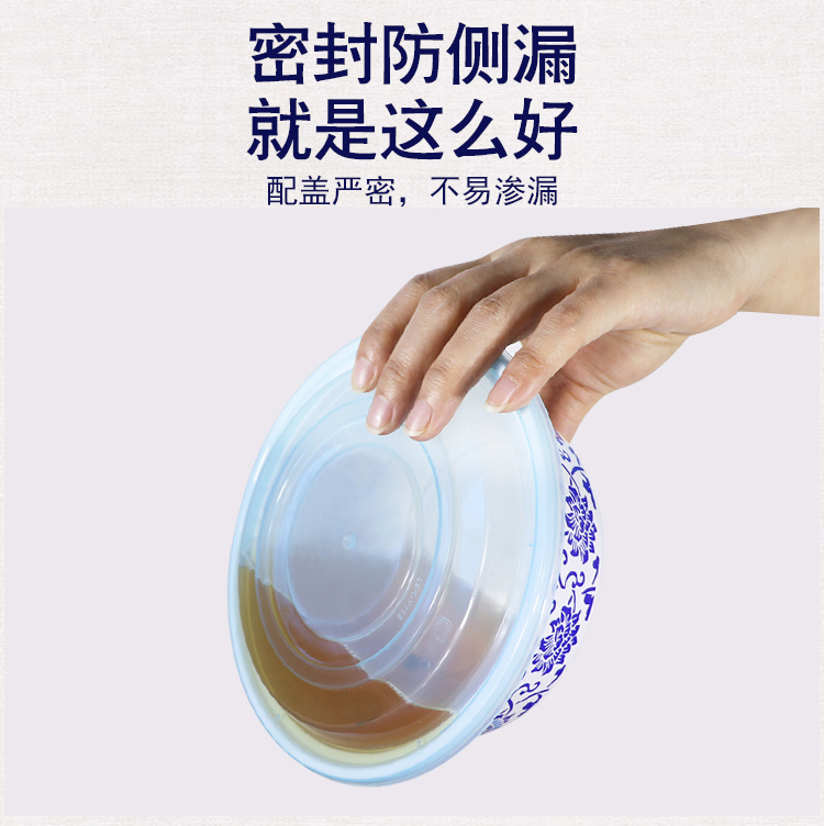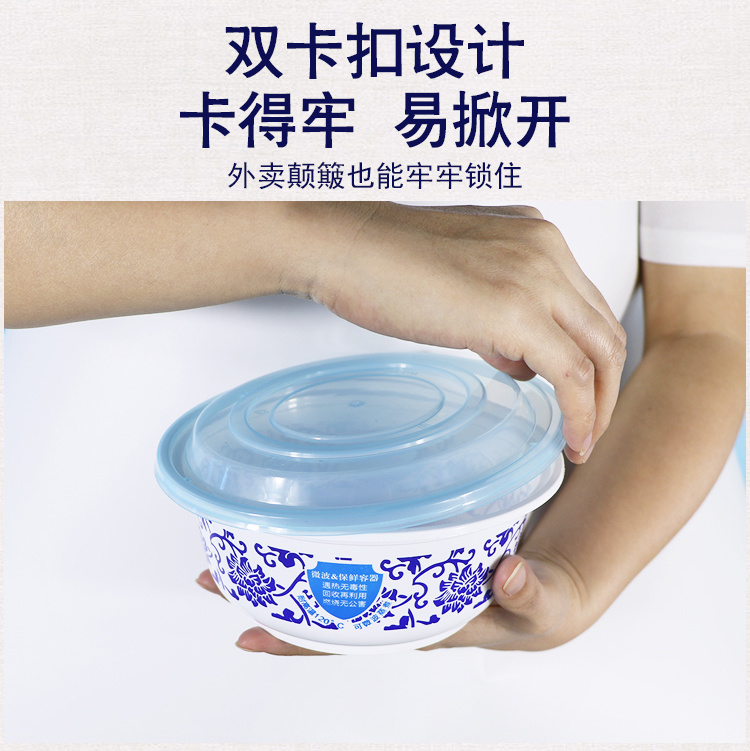 绿保康LBK-Y1050青花碗一次性餐盒便当盒快餐外卖打包盒子加厚圆形塑料饭碗商用家用批发