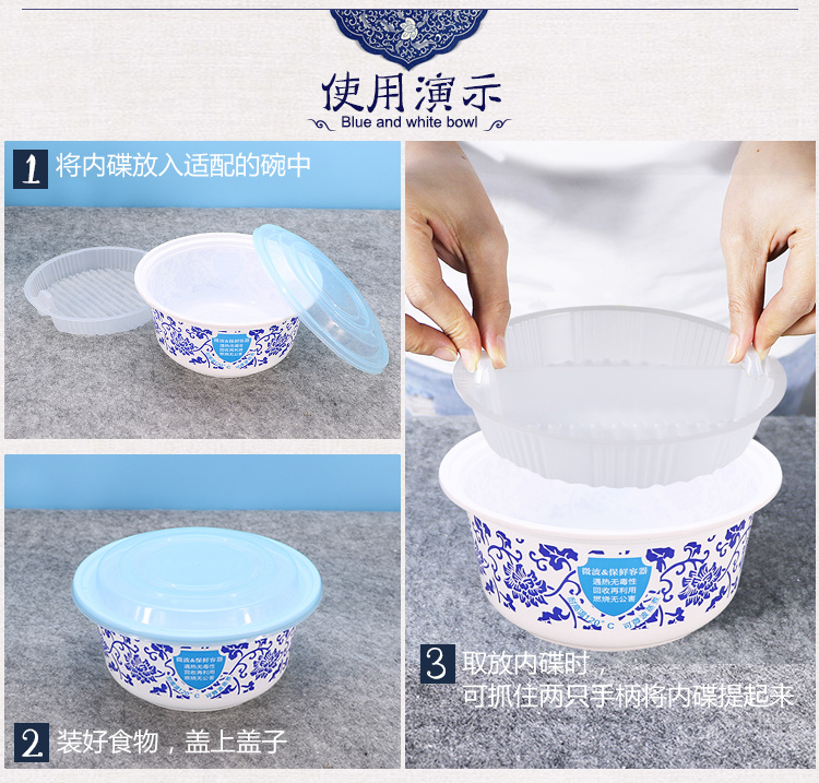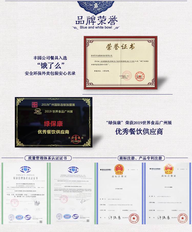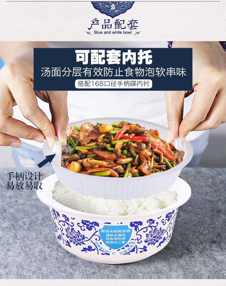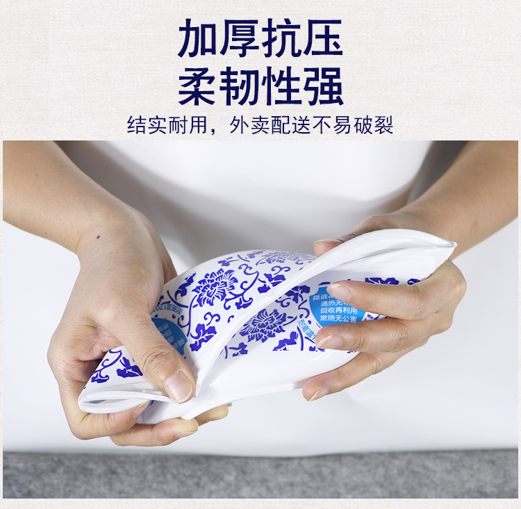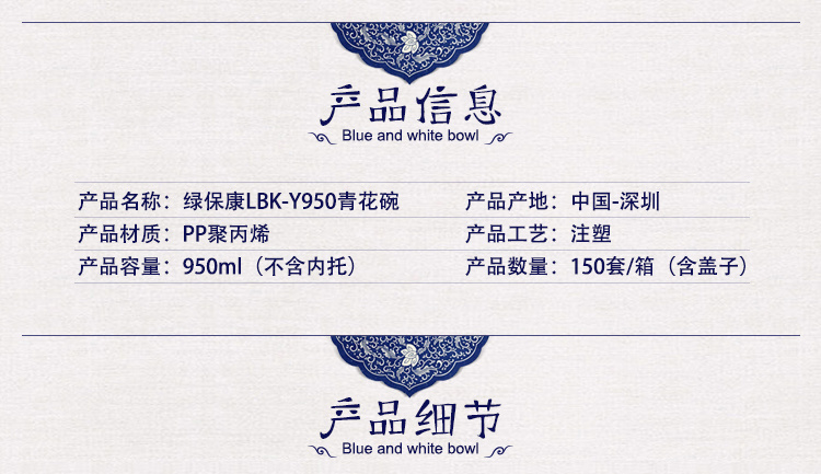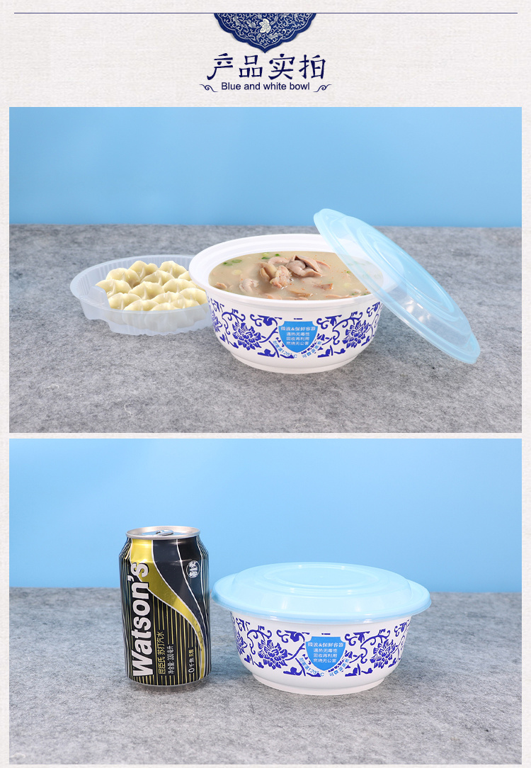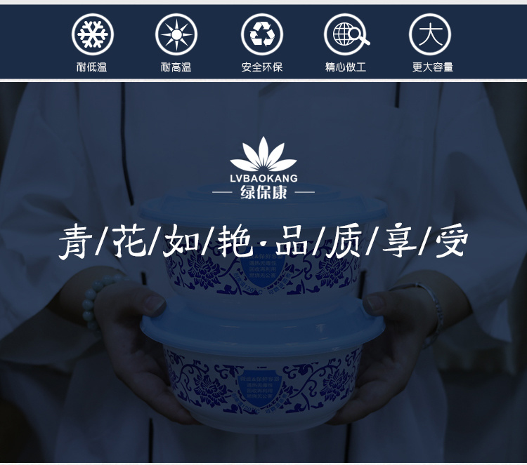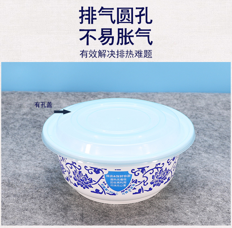 绿保康LBK-Y650青花碗一次性餐盒便当盒快餐外卖打包盒子加厚圆形塑料饭碗商用家用批发
