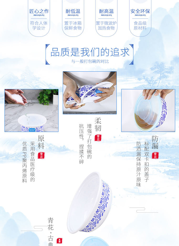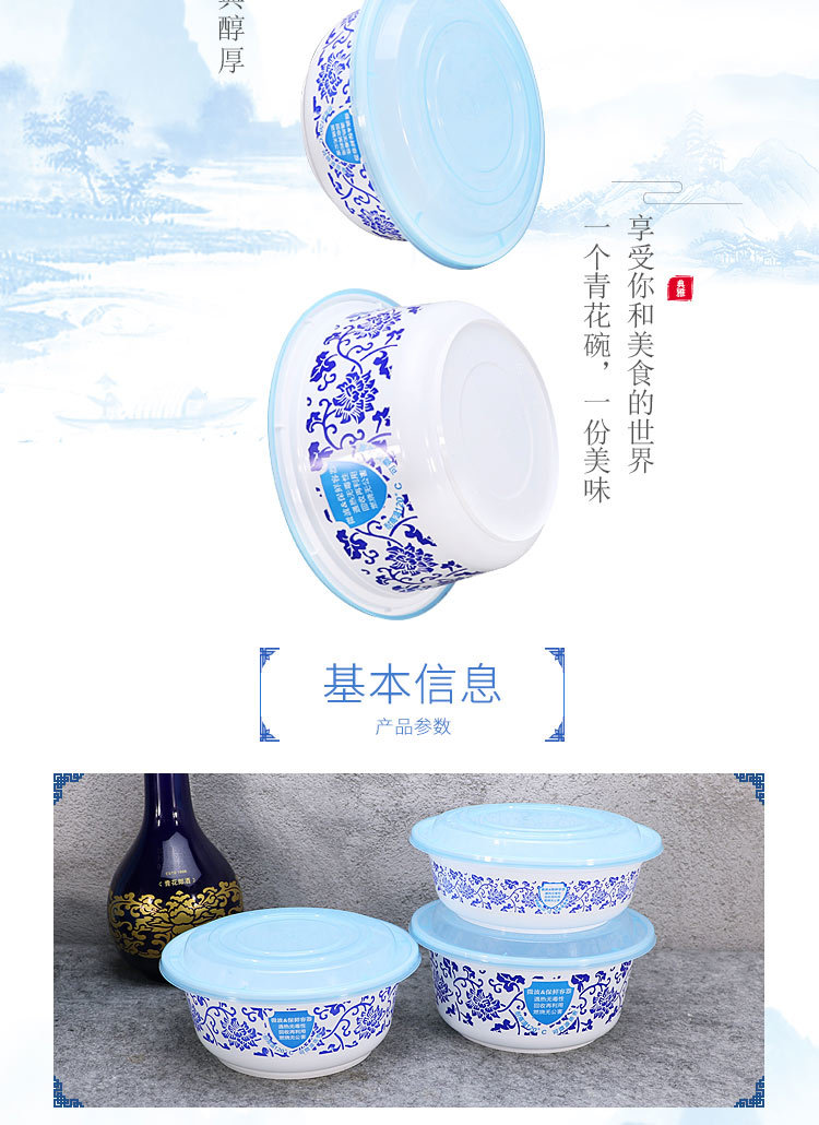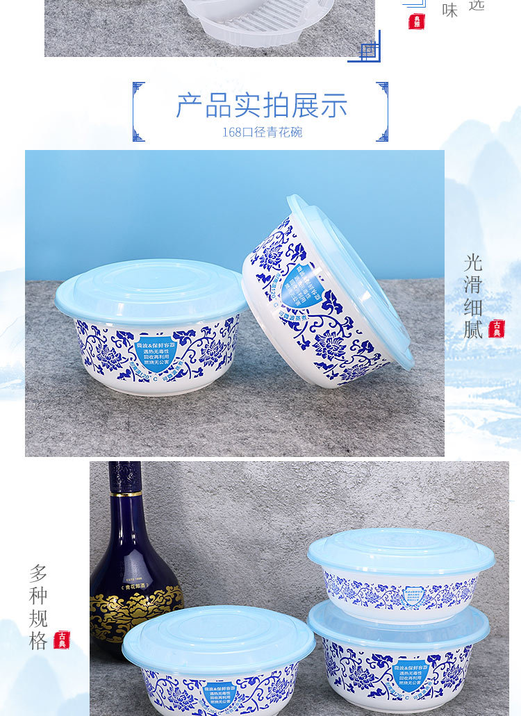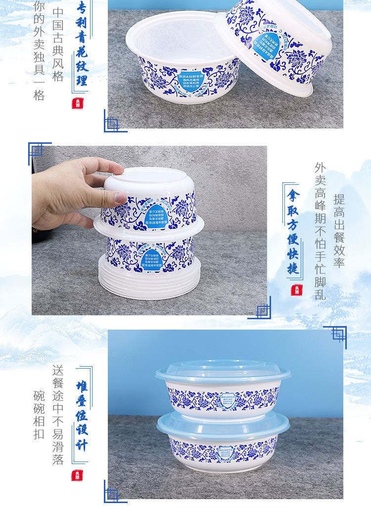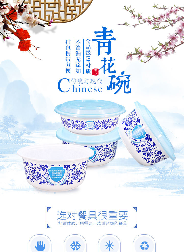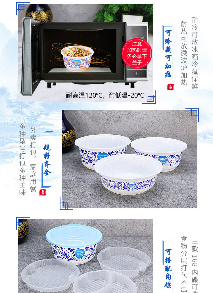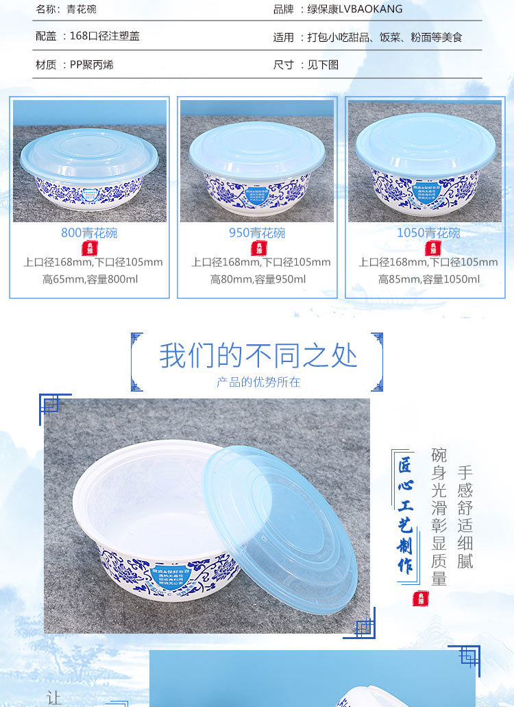 绿保康LBK-Y1050青花碗一次性餐盒便当盒快餐外卖打包盒子加厚圆形塑料饭碗商用家用批发