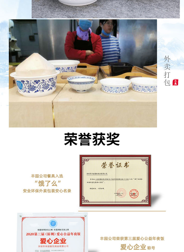 绿保康OK-750青花碗一次性餐盒便当盒快餐外卖打包盒子加厚圆形塑料饭碗商用家用批发