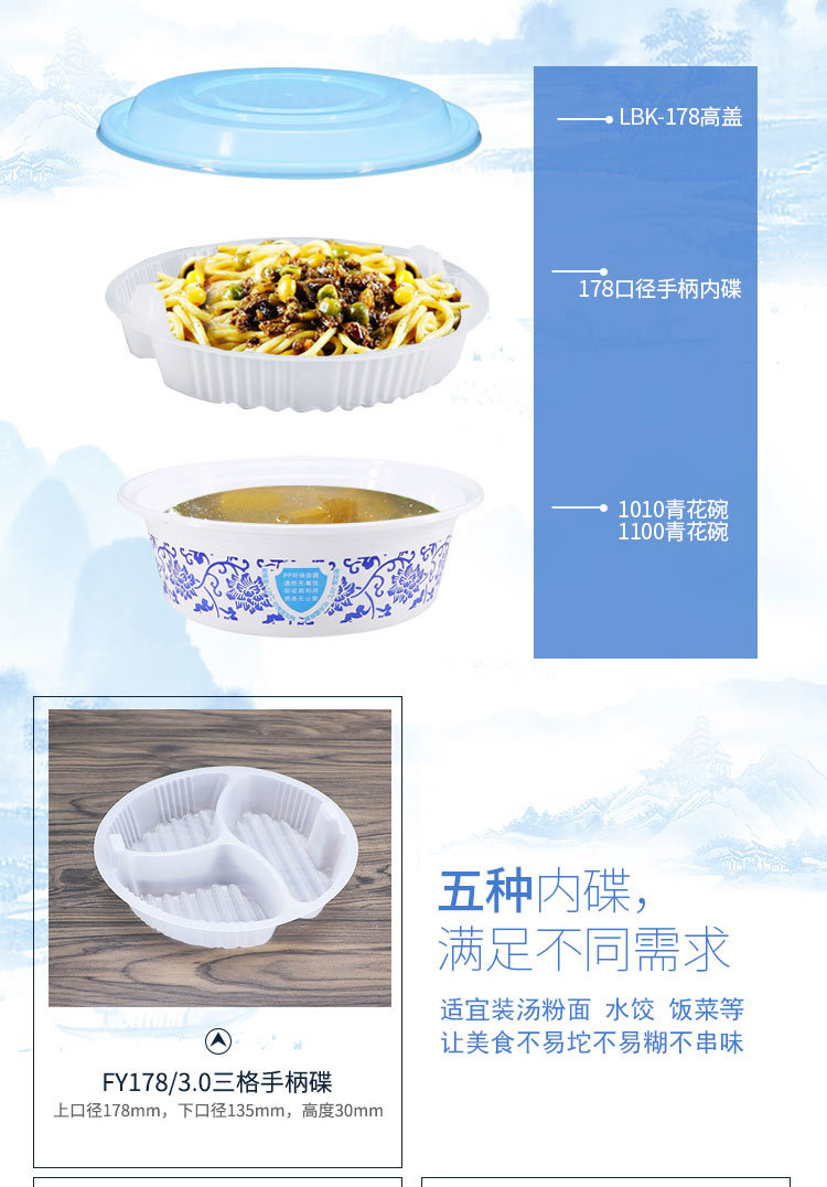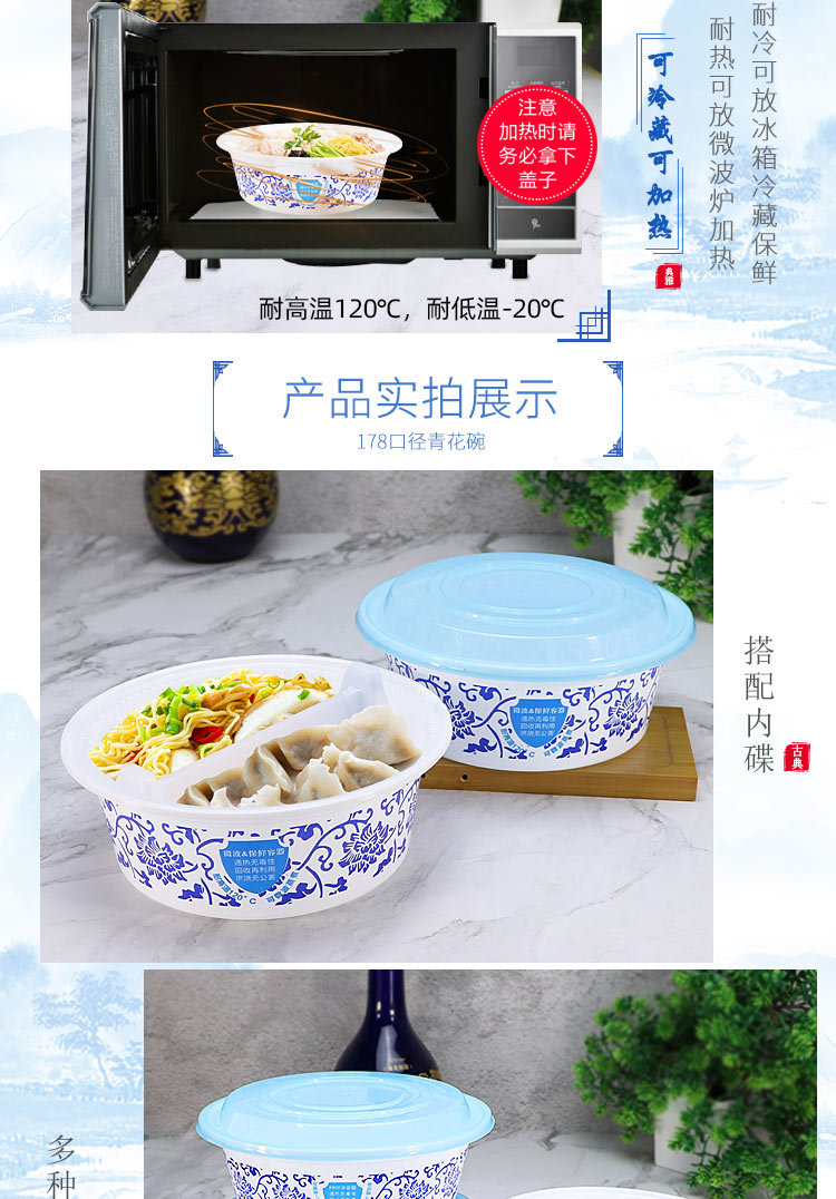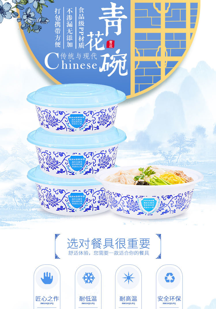 绿保康OK-1010青花碗一次性餐盒便当盒快餐外卖打包盒子加厚圆形塑料饭碗商用家用批发
