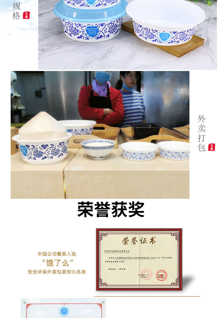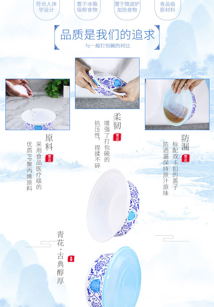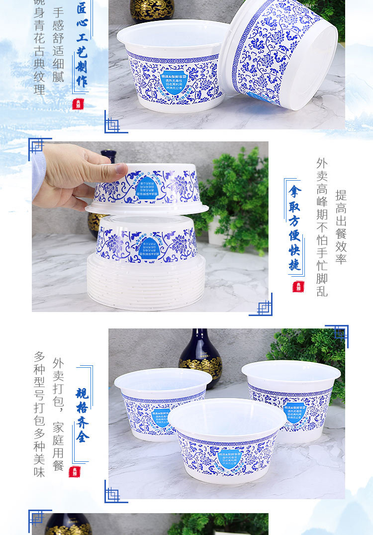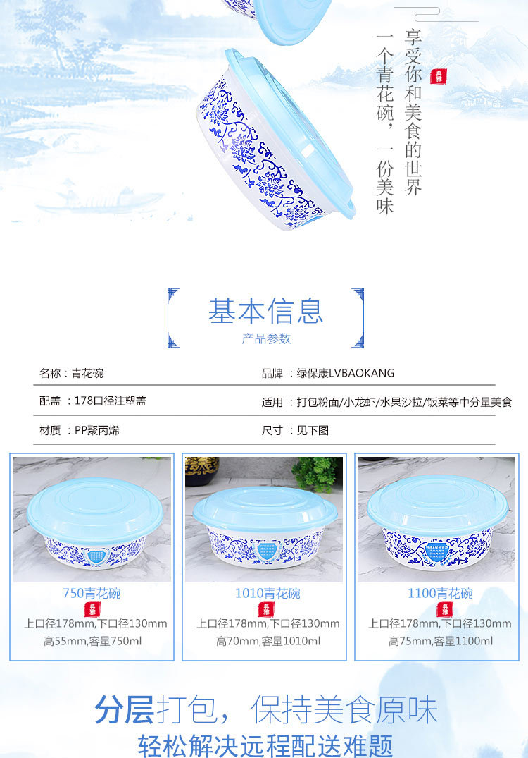 绿保康OK-750青花碗一次性餐盒便当盒快餐外卖打包盒子加厚圆形塑料饭碗商用家用批发