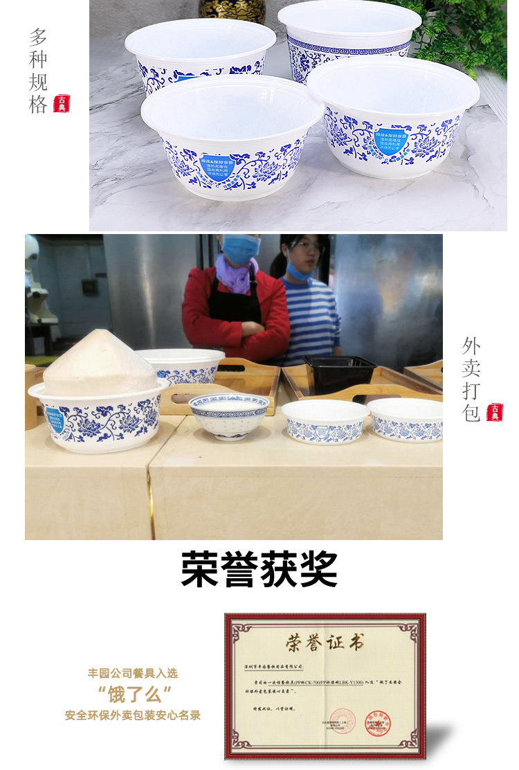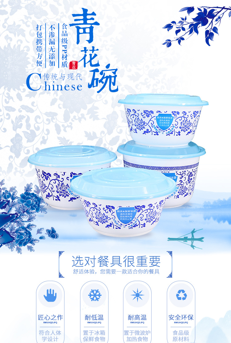 绿保康LBK-Y1080青花碗一次性餐盒便当盒快餐外卖打包盒子加厚圆形塑料饭碗商用家用批发