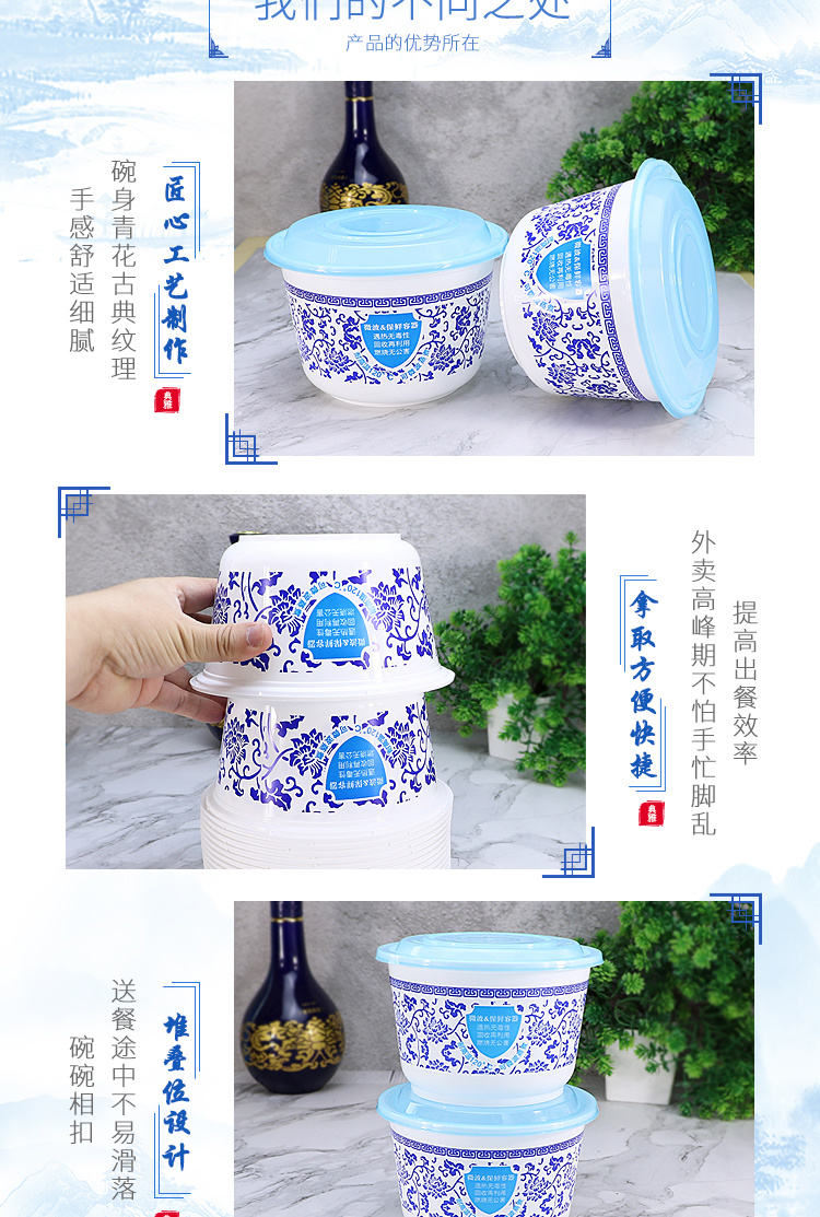 绿保康LBK-Y1450青花碗一次性餐盒便当盒快餐外卖打包盒子加厚圆形塑料饭碗商用家用批发