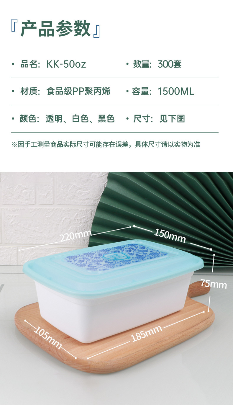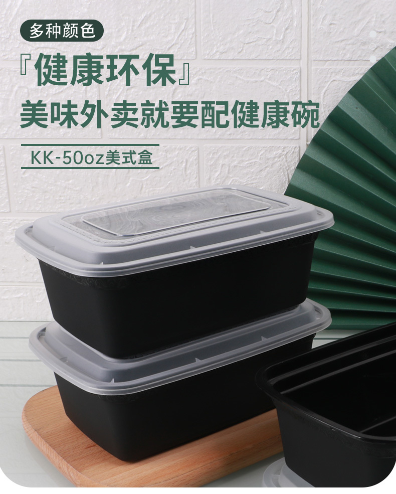 KK-42oz新款美式一次性打包盒加厚长方盒黑白透塑料外卖餐盒