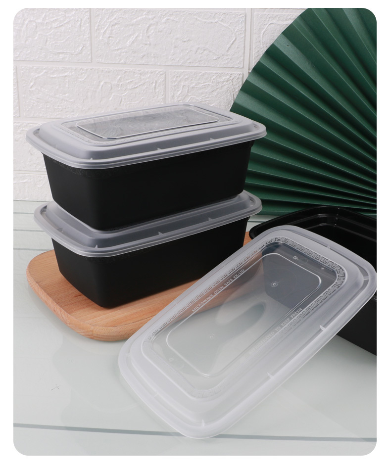 HH-26oz新款美式一次性打包盒加厚长方盒黑白透塑料外卖餐盒