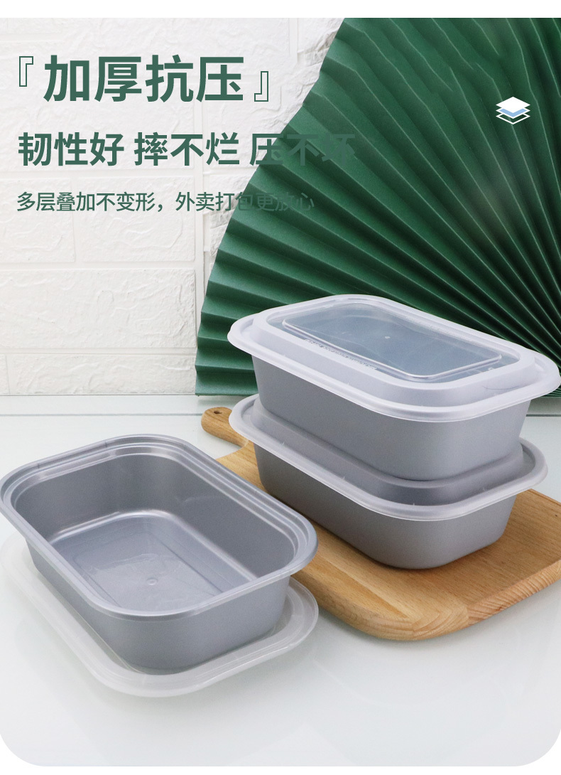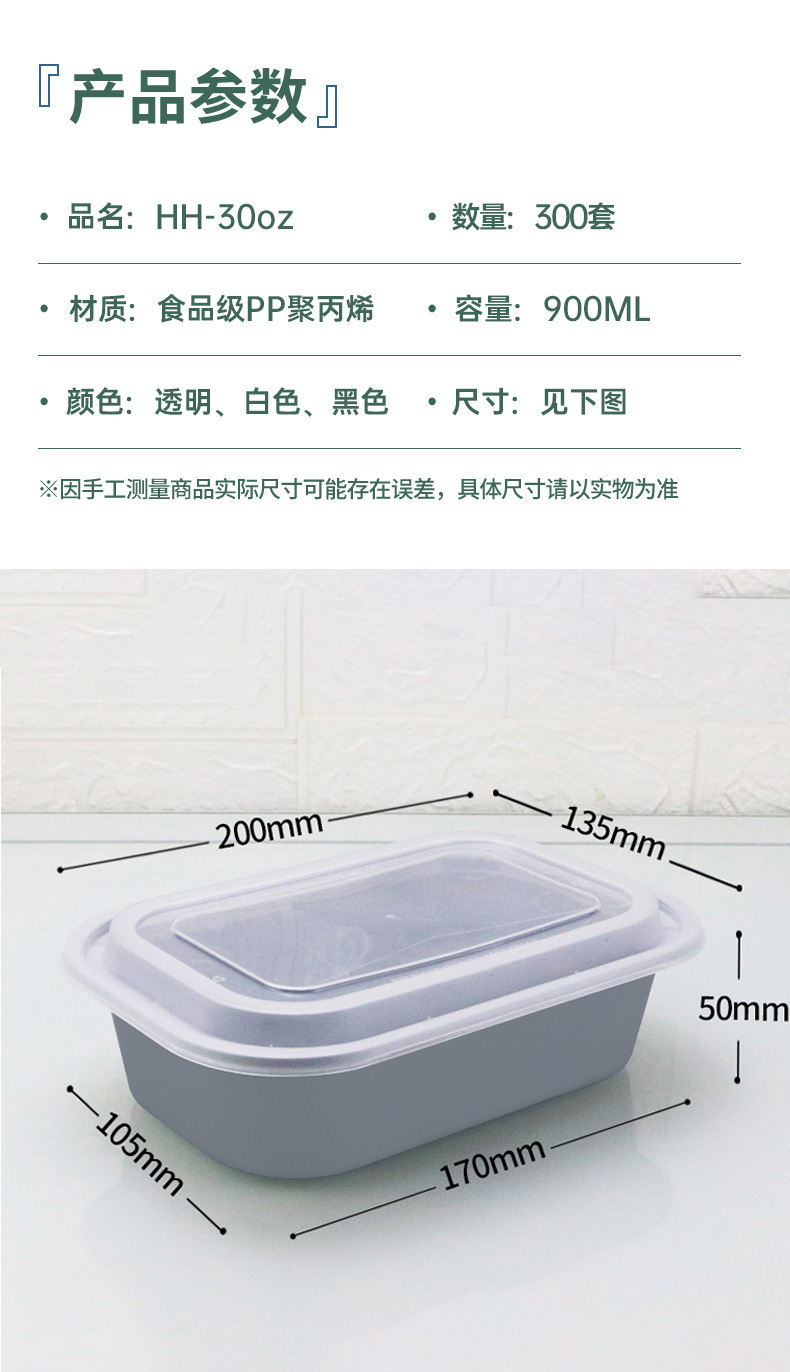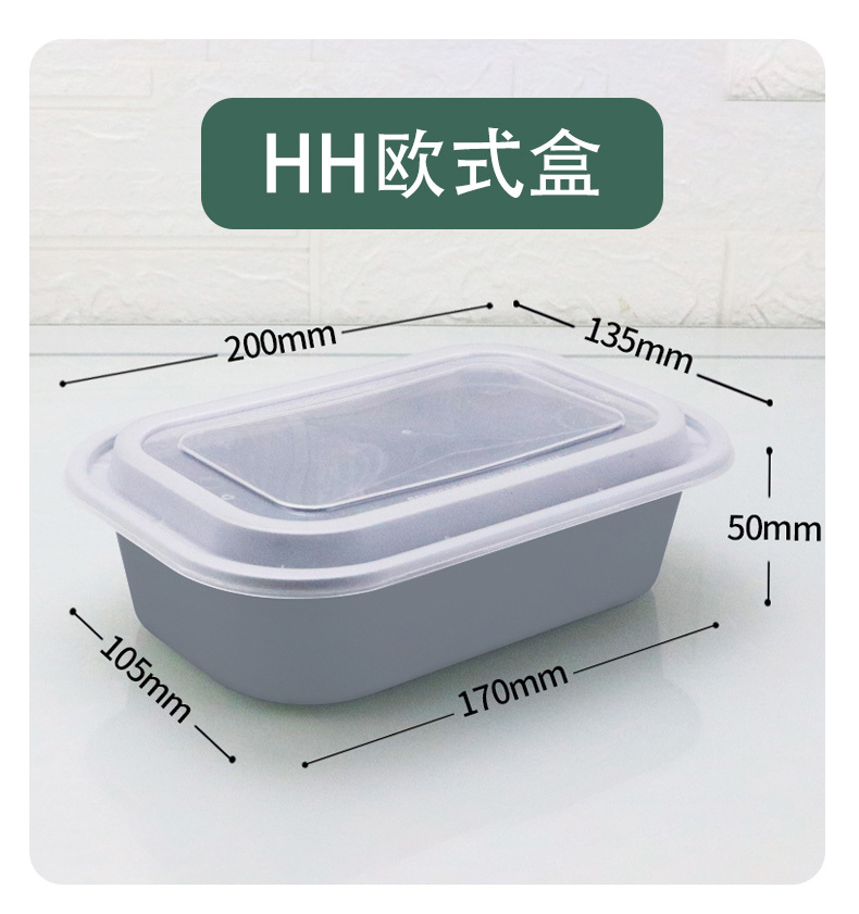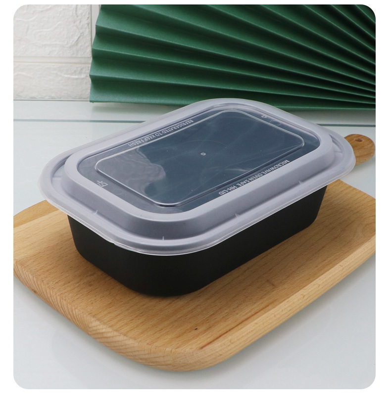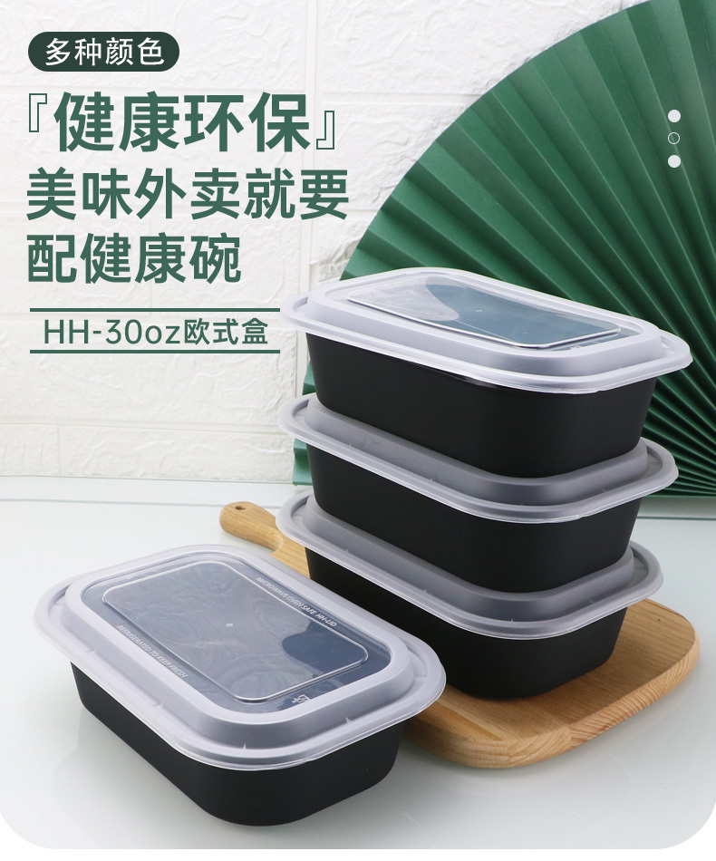 HH-26oz新款美式一次性打包盒加厚长方盒黑白透塑料外卖餐盒