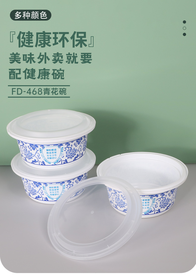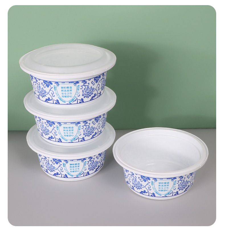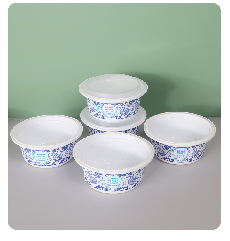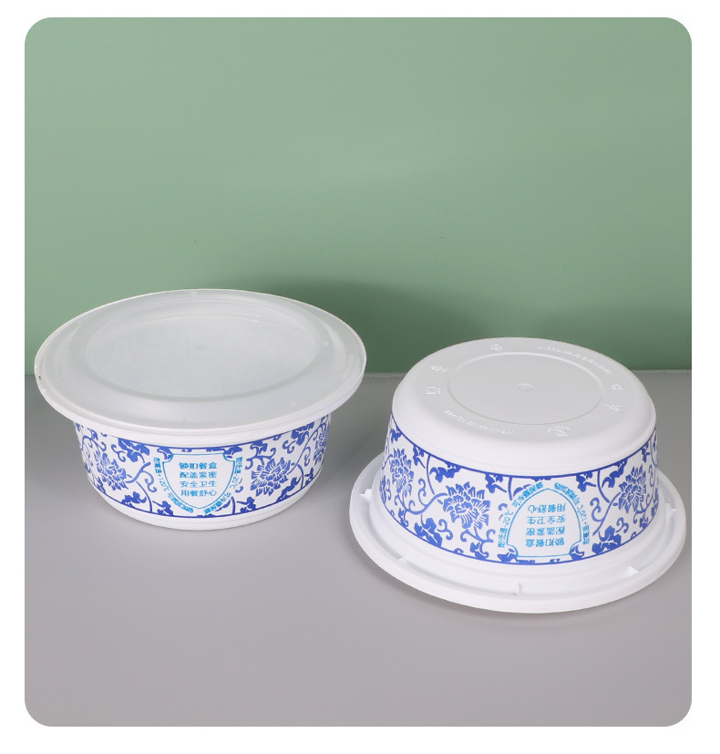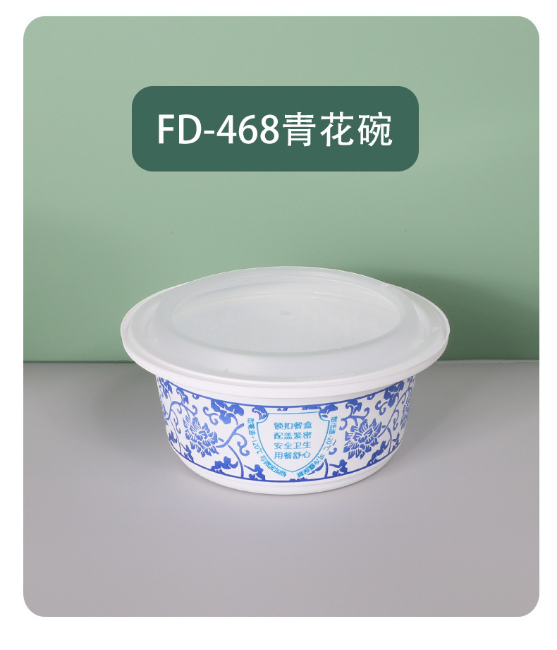 FD-568青花一次性餐盒防盗锁扣快餐盒圆形PP加厚外卖打包盒子便当盒子