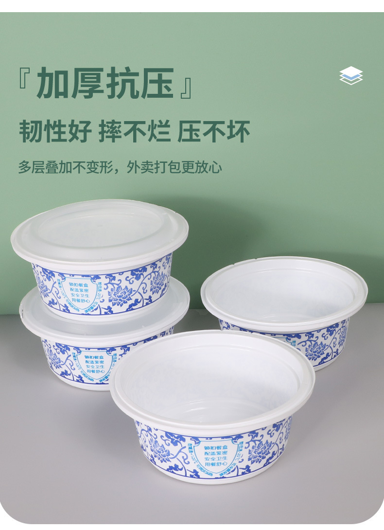 绿保康LBK-Y2000-Y3500青花碗一次性餐盒便当盒快餐外卖打包盒子加厚圆形塑料饭碗商用家用批发