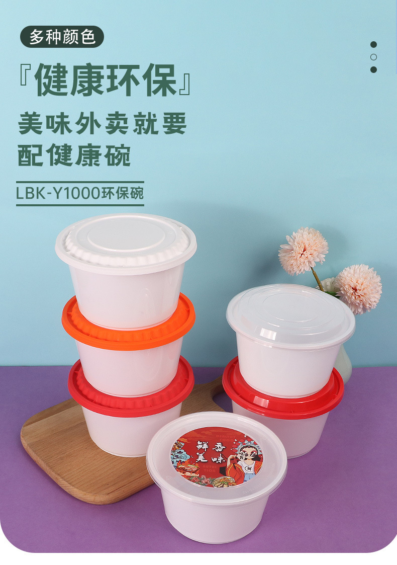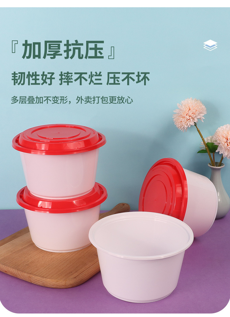 一次性碗圆形加厚塑料饭碗快餐盒子外卖打包盒野餐批发