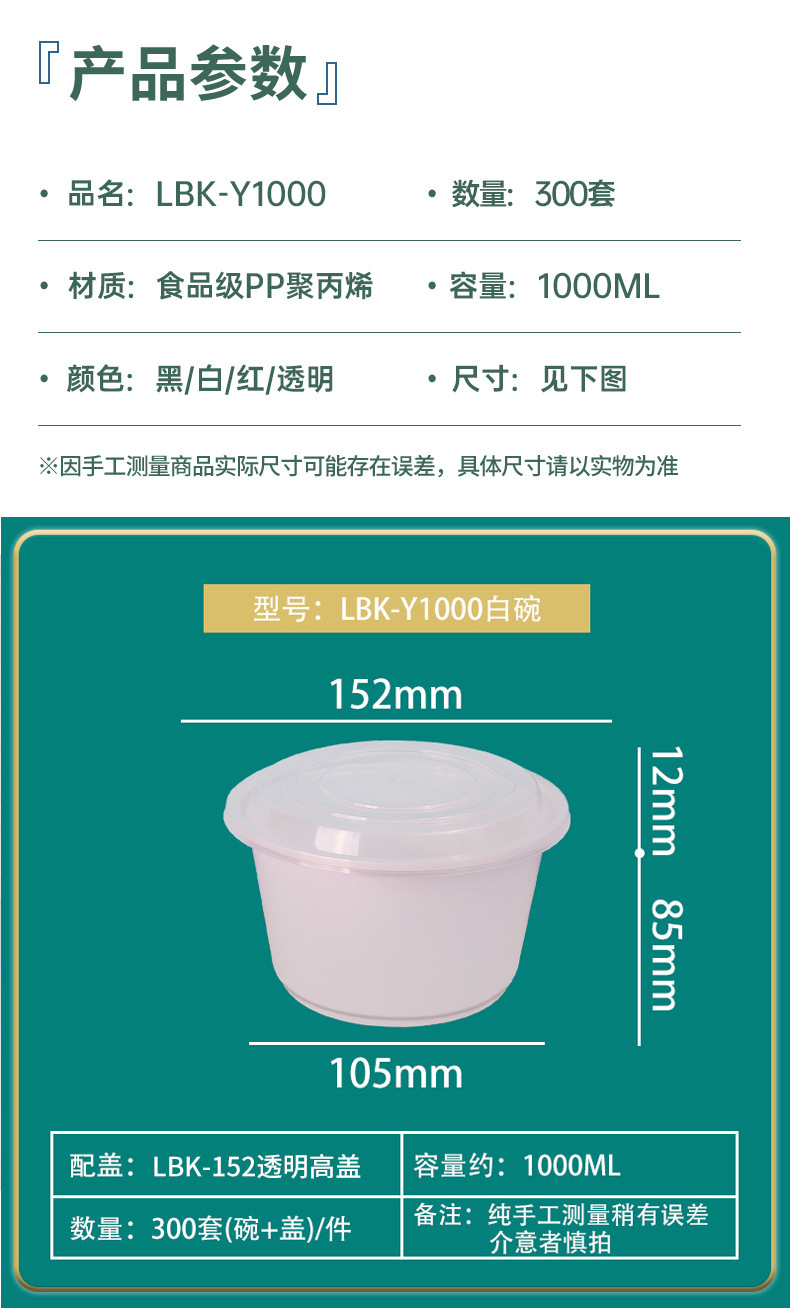 绿保康Y-720圆碗一次性餐盒快餐盒圆形PP加厚外卖打包盒子