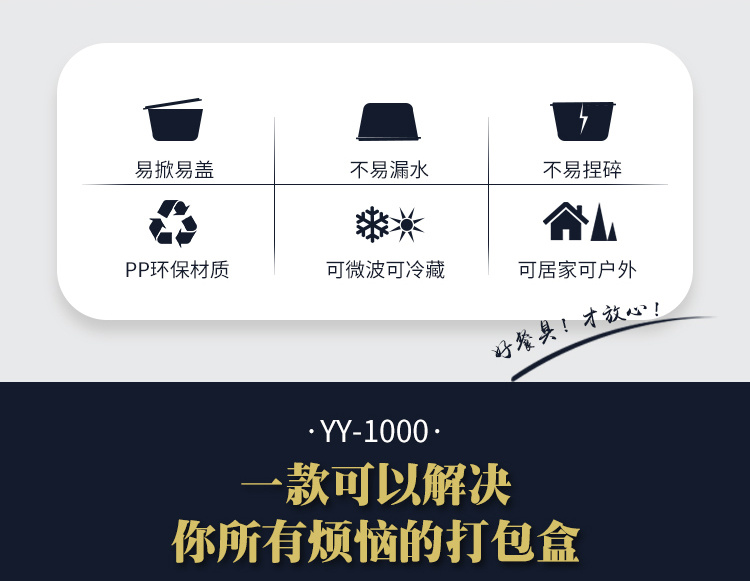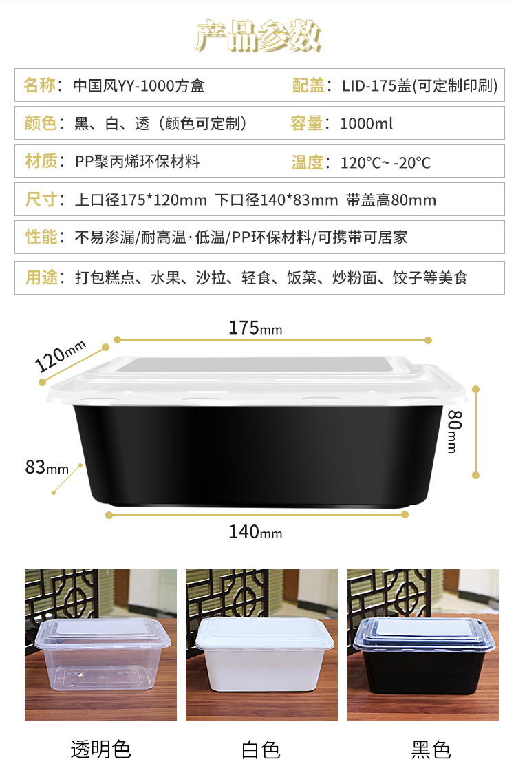 绿保康YY-750一次性餐盒快餐打包盒外卖盒塑料方形便当盒子家用批发