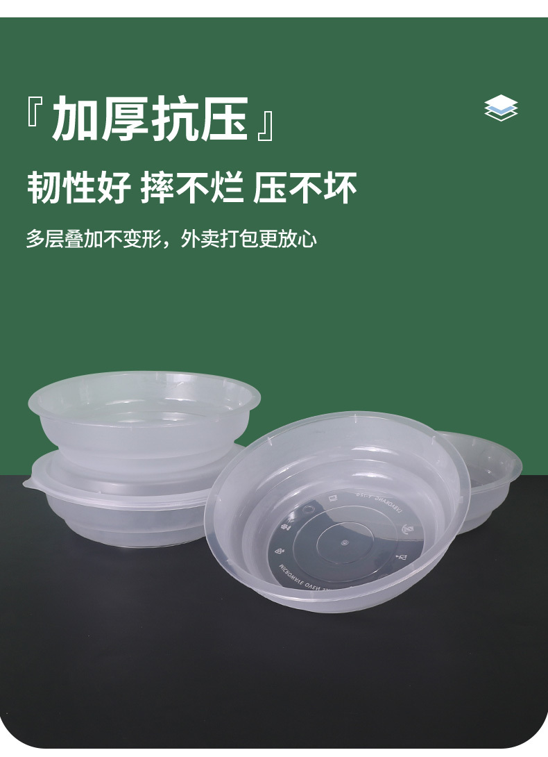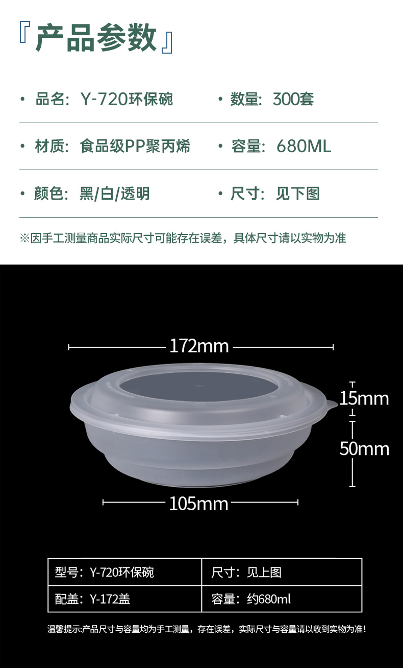 绿保康Y-720圆碗一次性餐盒快餐盒圆形PP加厚外卖打包盒子
