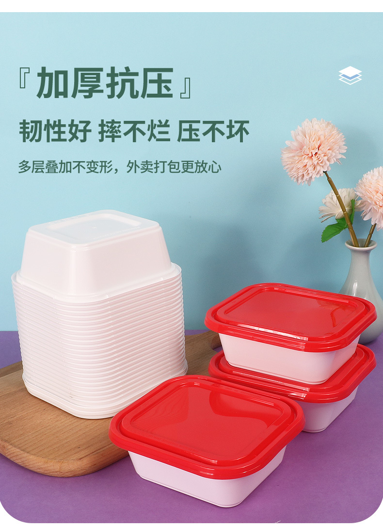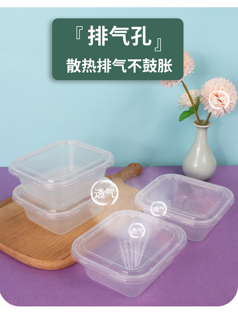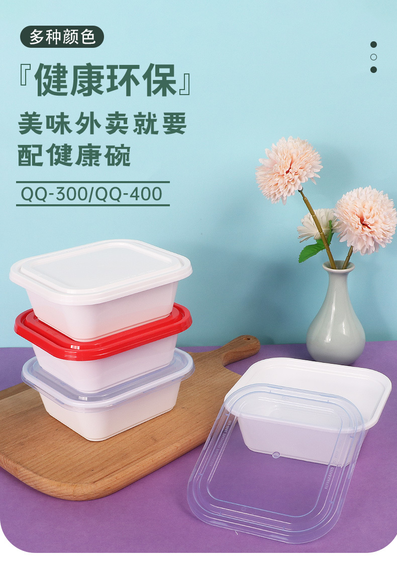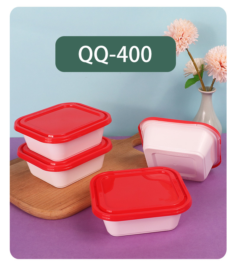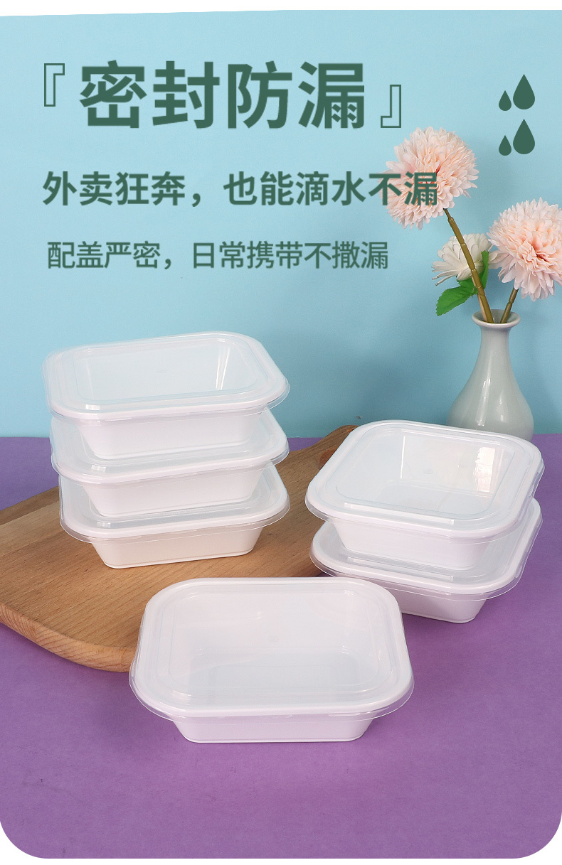 QQ400食品级高档饭盒加厚带盖圆形外卖长方形打包盒一次性餐盒