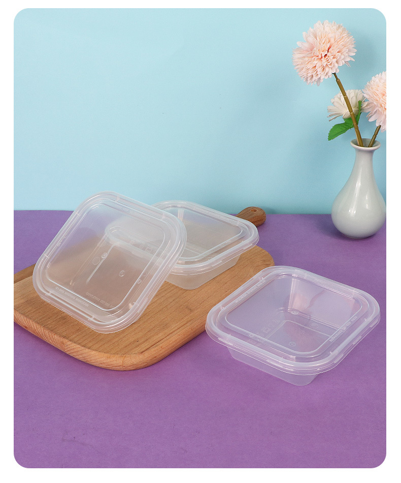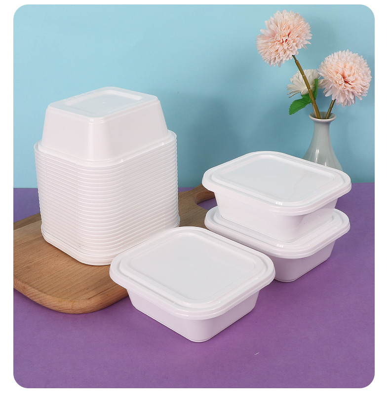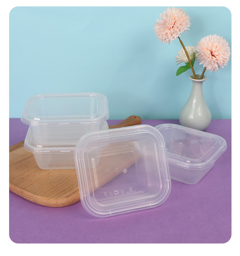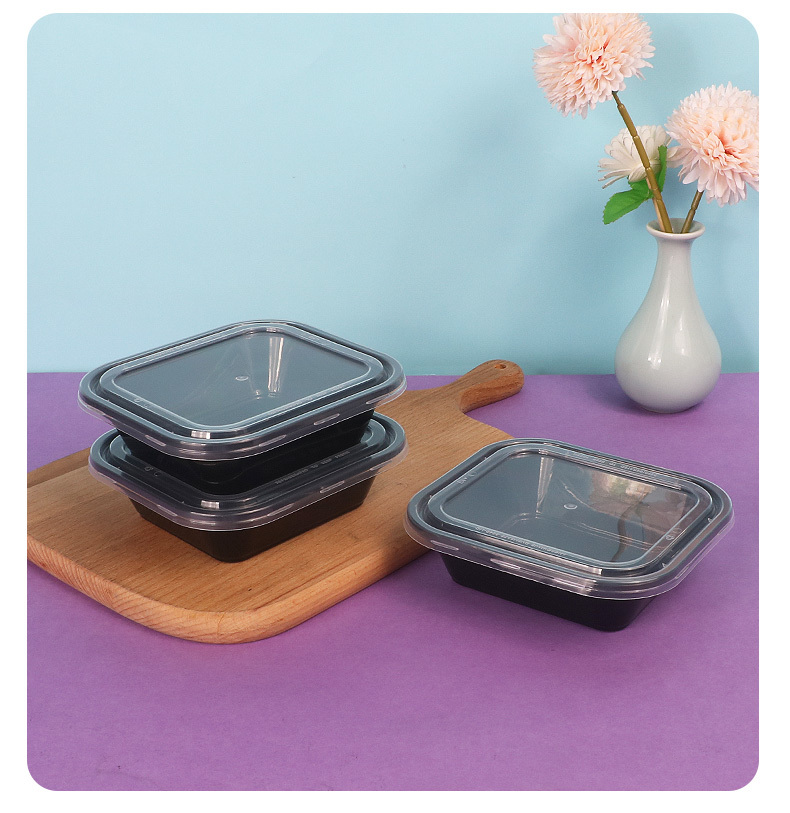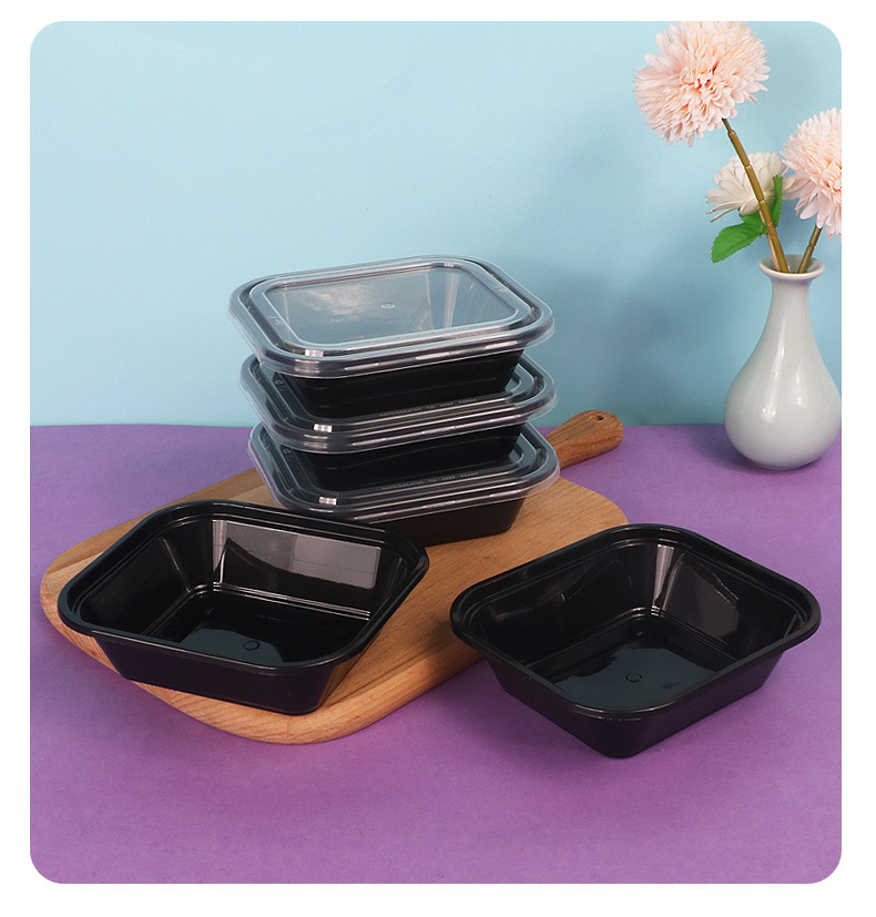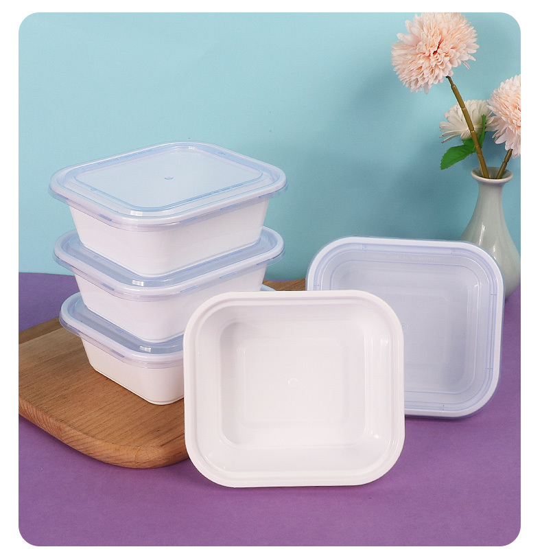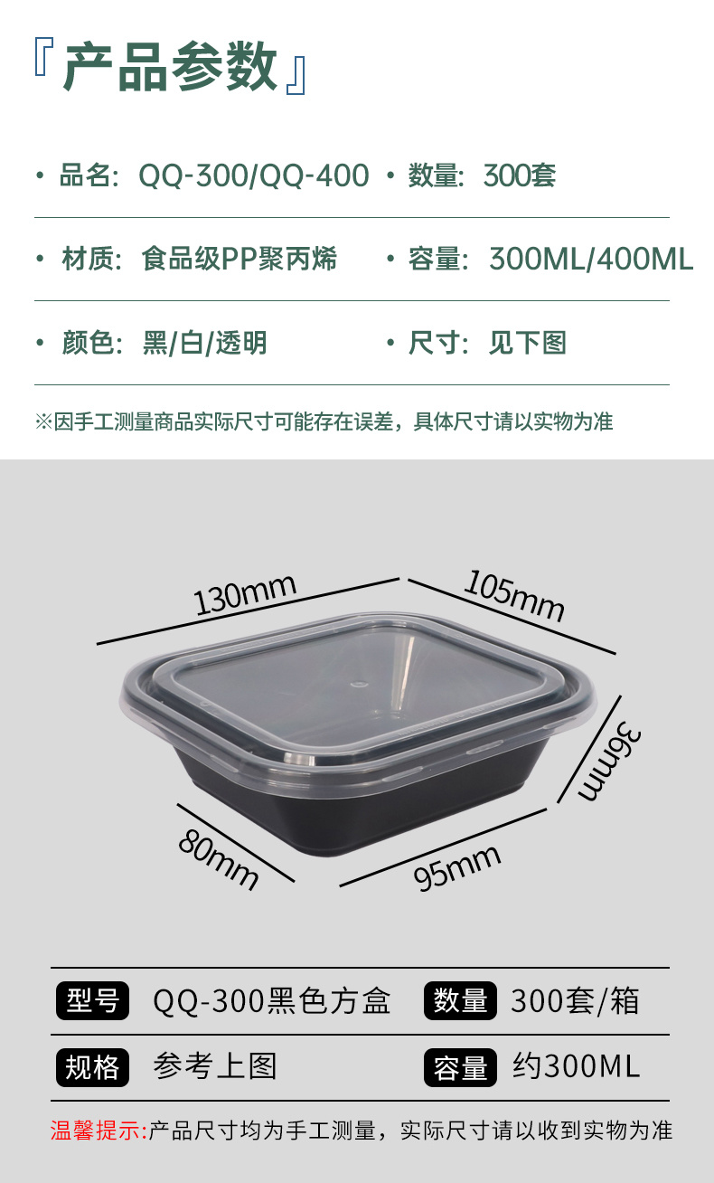 QQ400食品级高档饭盒加厚带盖圆形外卖长方形打包盒一次性餐盒