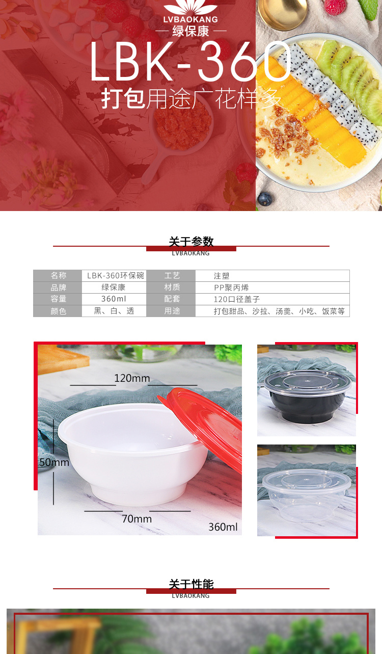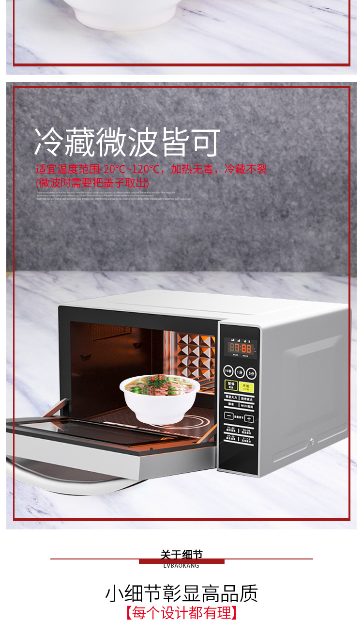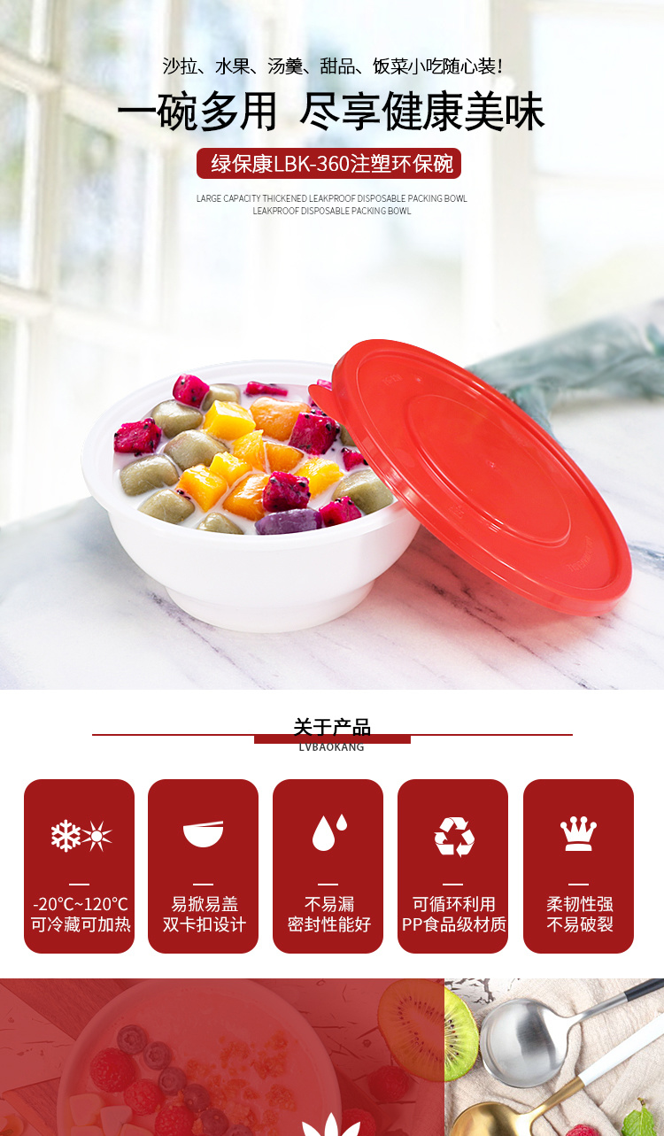 绿保康Y-720圆碗一次性餐盒快餐盒圆形PP加厚外卖打包盒子