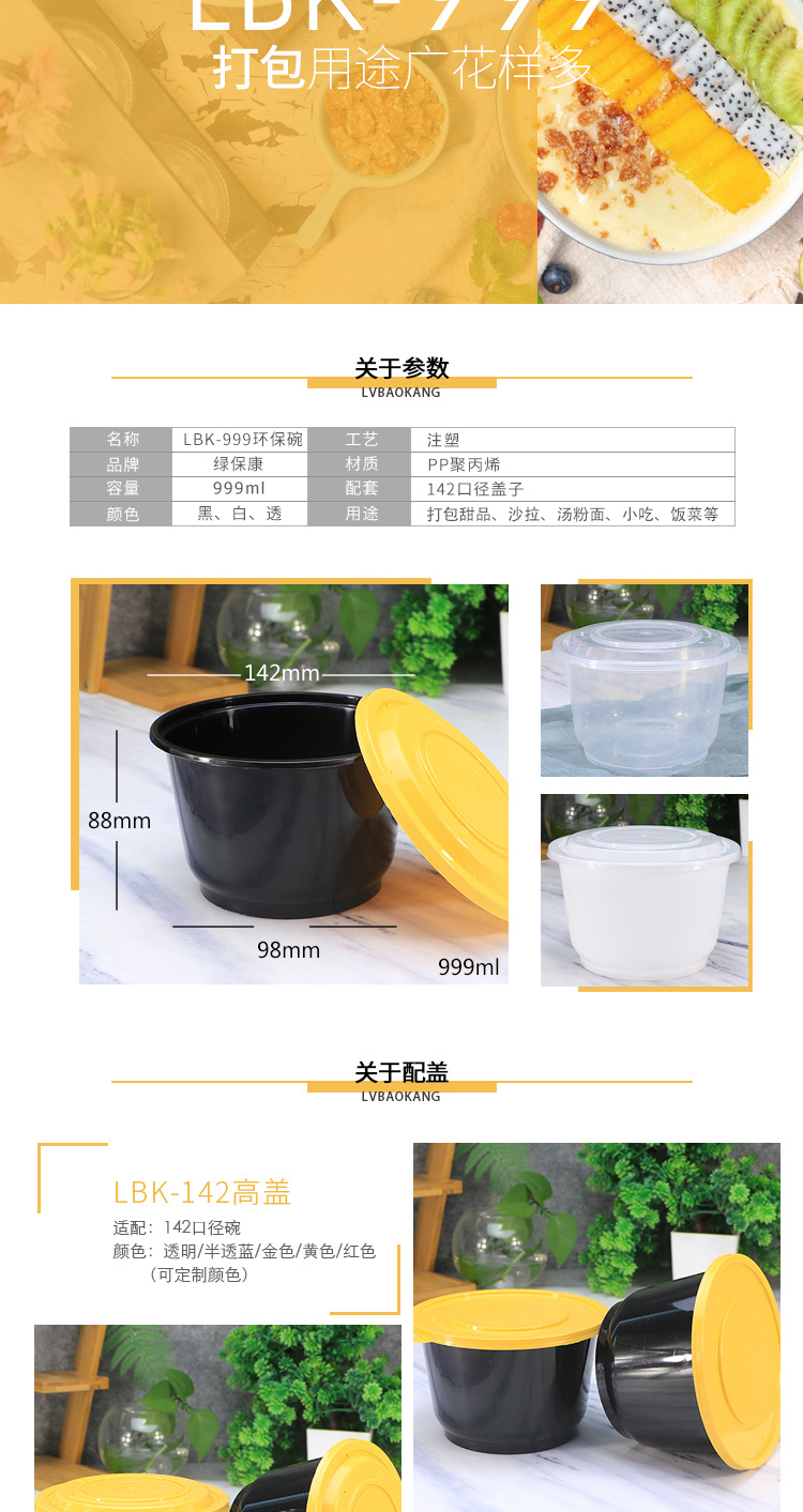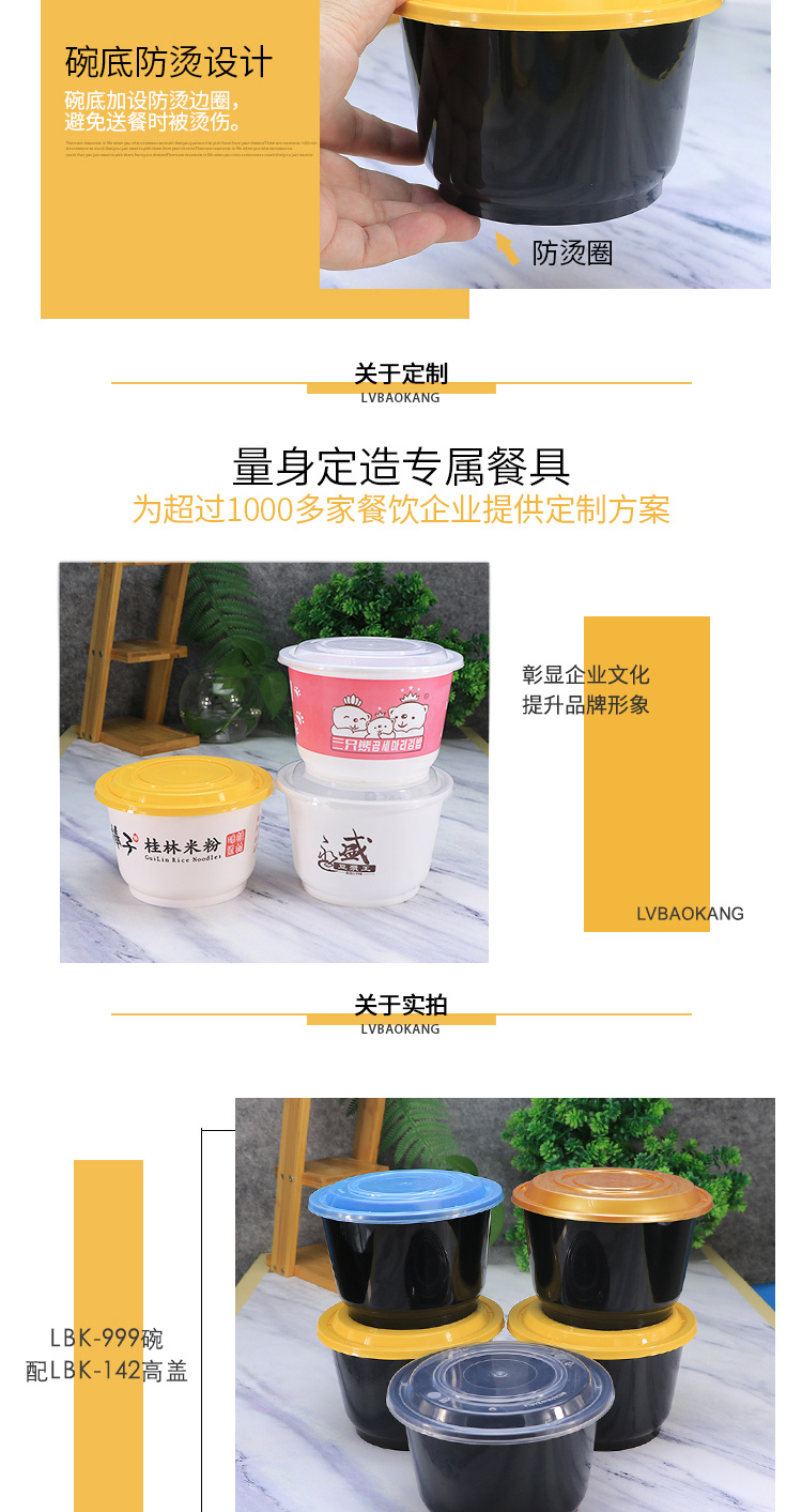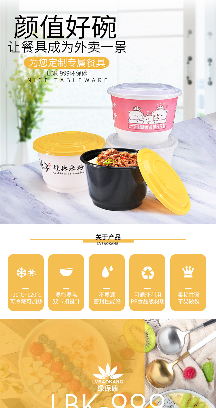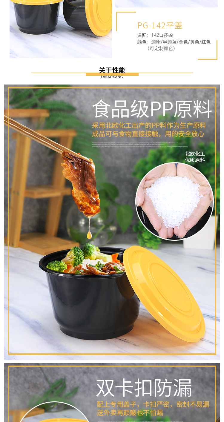 绿保康Y-720圆碗一次性餐盒快餐盒圆形PP加厚外卖打包盒子
