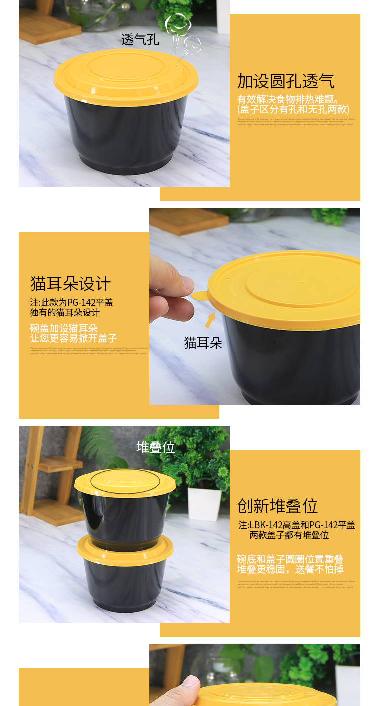 FD-1160一次性餐盒防盗锁扣快餐盒圆形PP加厚外卖打包盒子便当盒子
