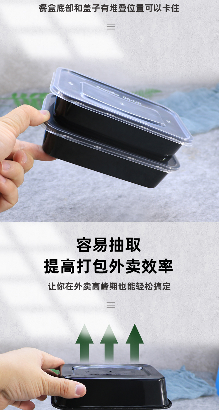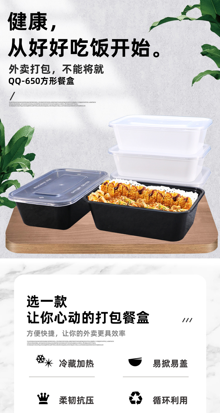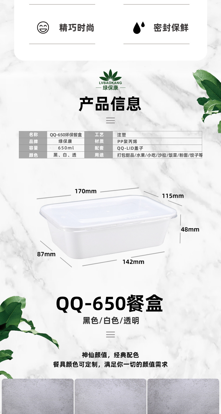 绿保康QQ-650一次性餐盒快餐打包盒外卖盒塑料方形便当盒子家用批发
