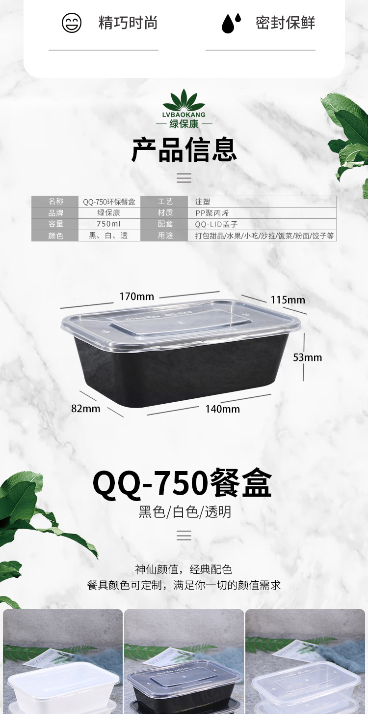 绿保康QQ-750一次性餐盒快餐打包盒外卖盒塑料方形便当盒子家用批发