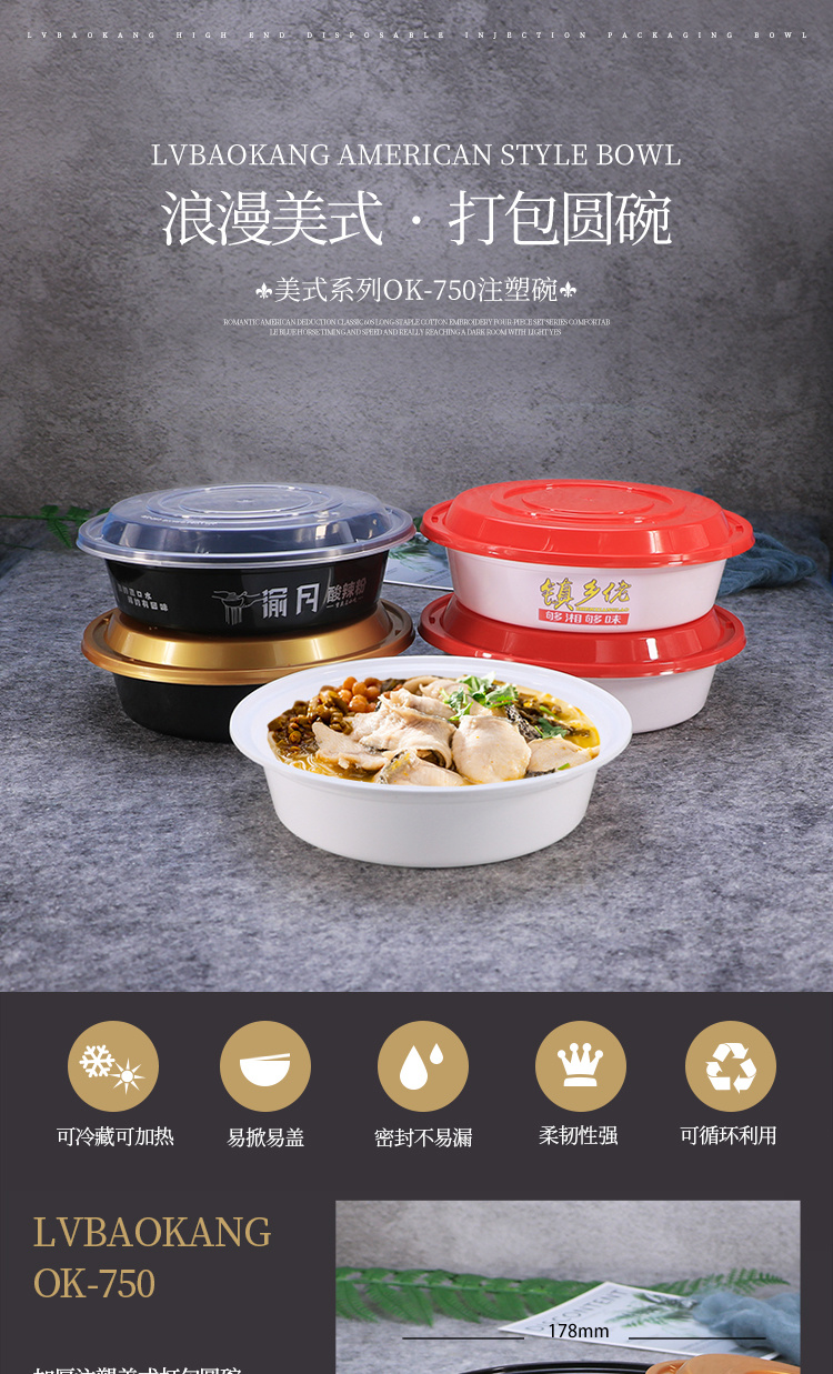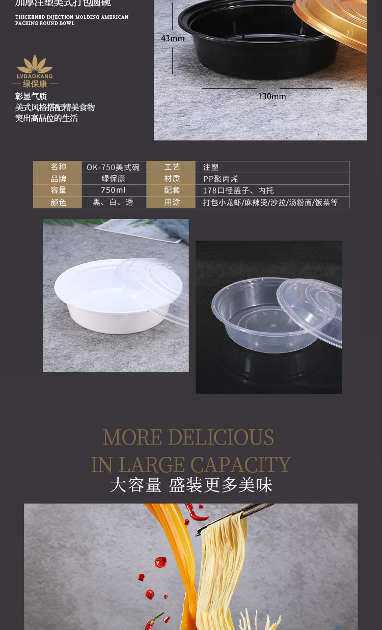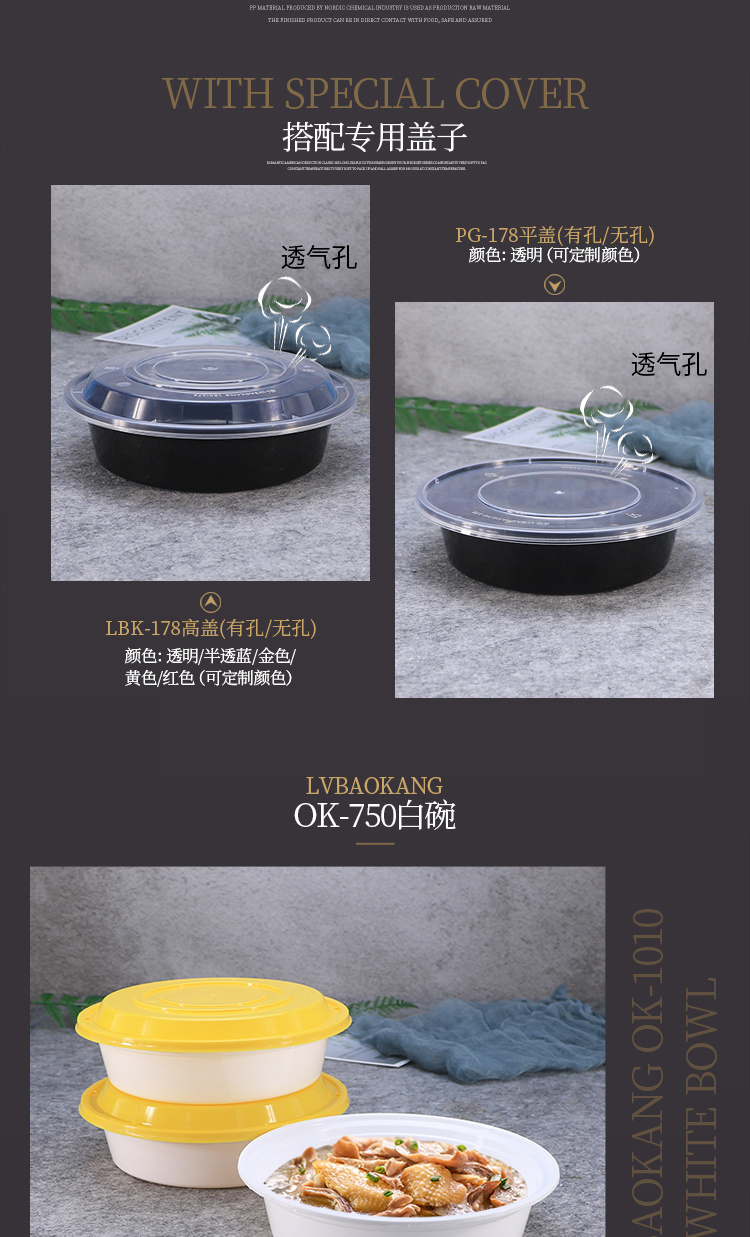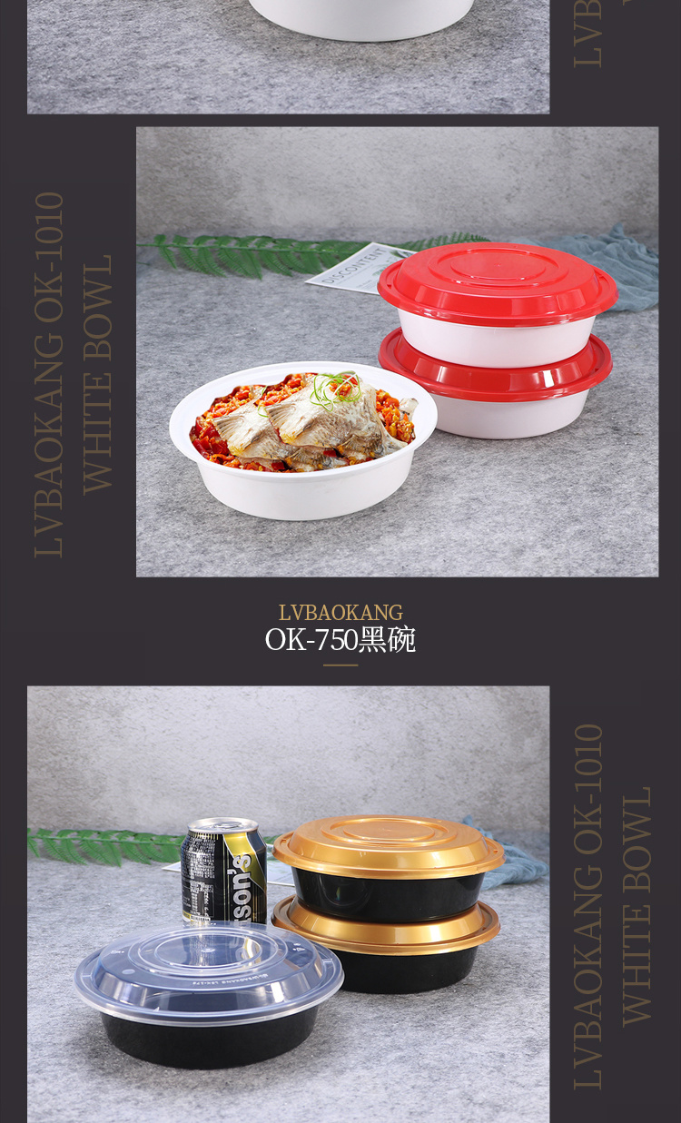 绿保康Y-720圆碗一次性餐盒快餐盒圆形PP加厚外卖打包盒子