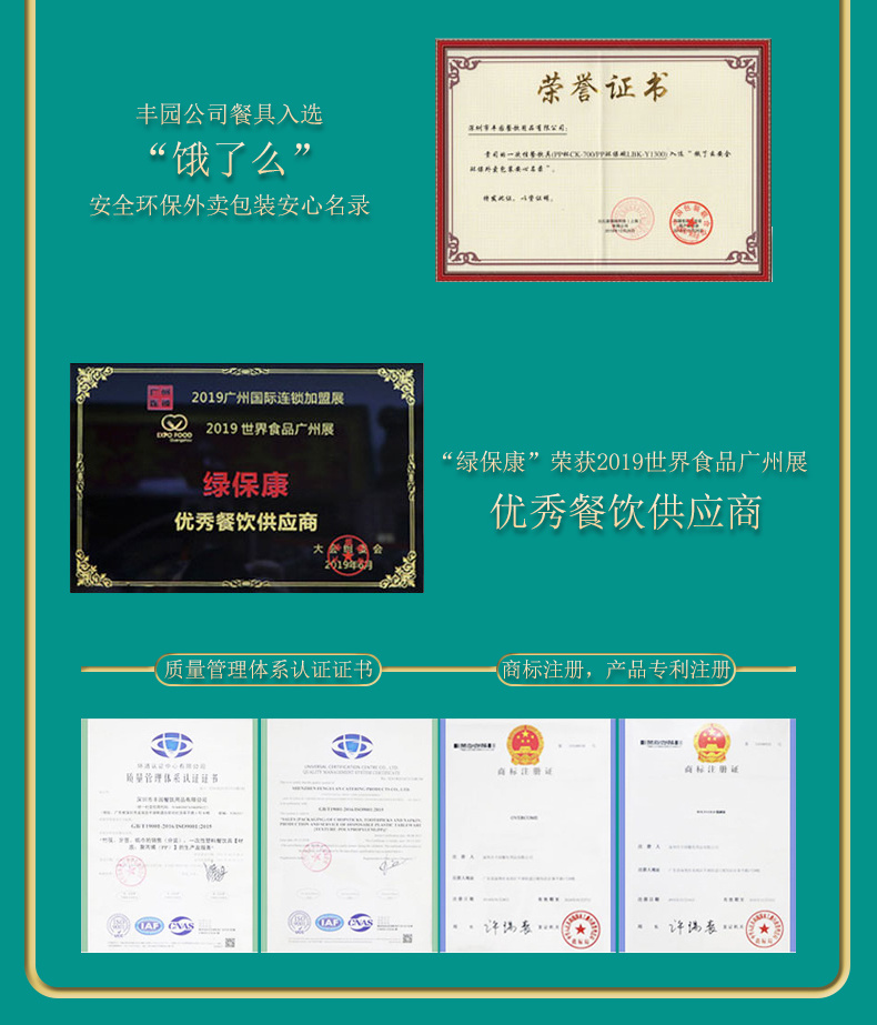 公司主打产品:一次性打包碗、一次性外卖餐盒、PED生物可降解餐饮具,注塑奶茶杯、四件套餐具包、刀叉勺等系列。被深圳市绿色产业促进会评为“特别推荐绿色环保餐具”,是深圳市绿色餐饮单位指定供应商。