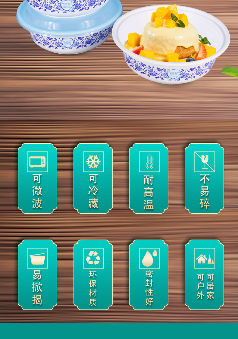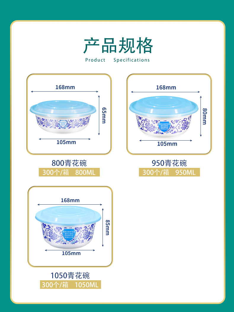 丰园一次性碗加厚家用餐具拌面凉皮拌饭快餐饭盒外卖打包盒保温