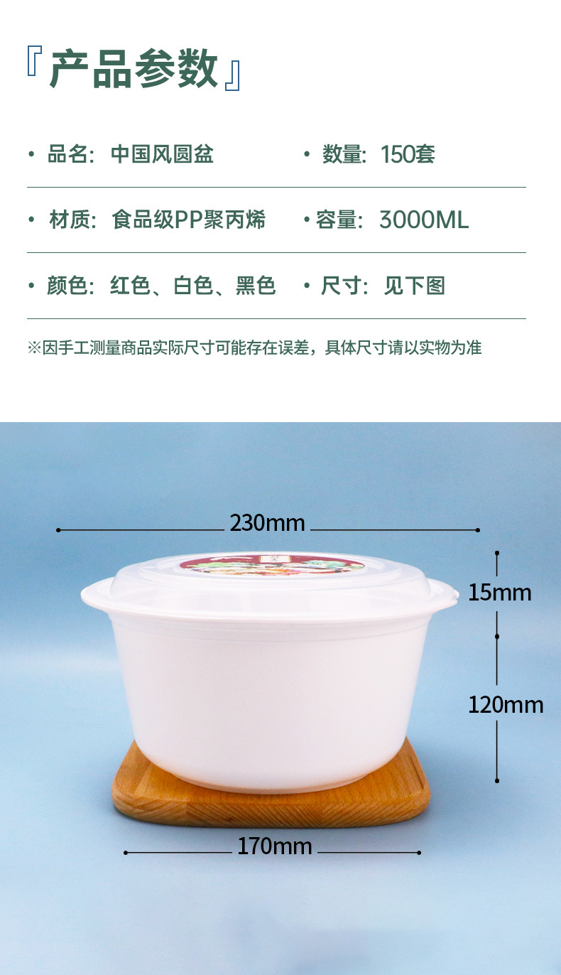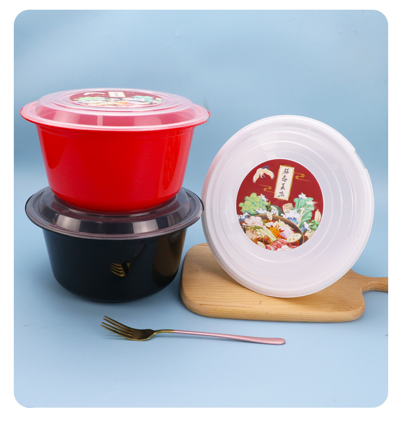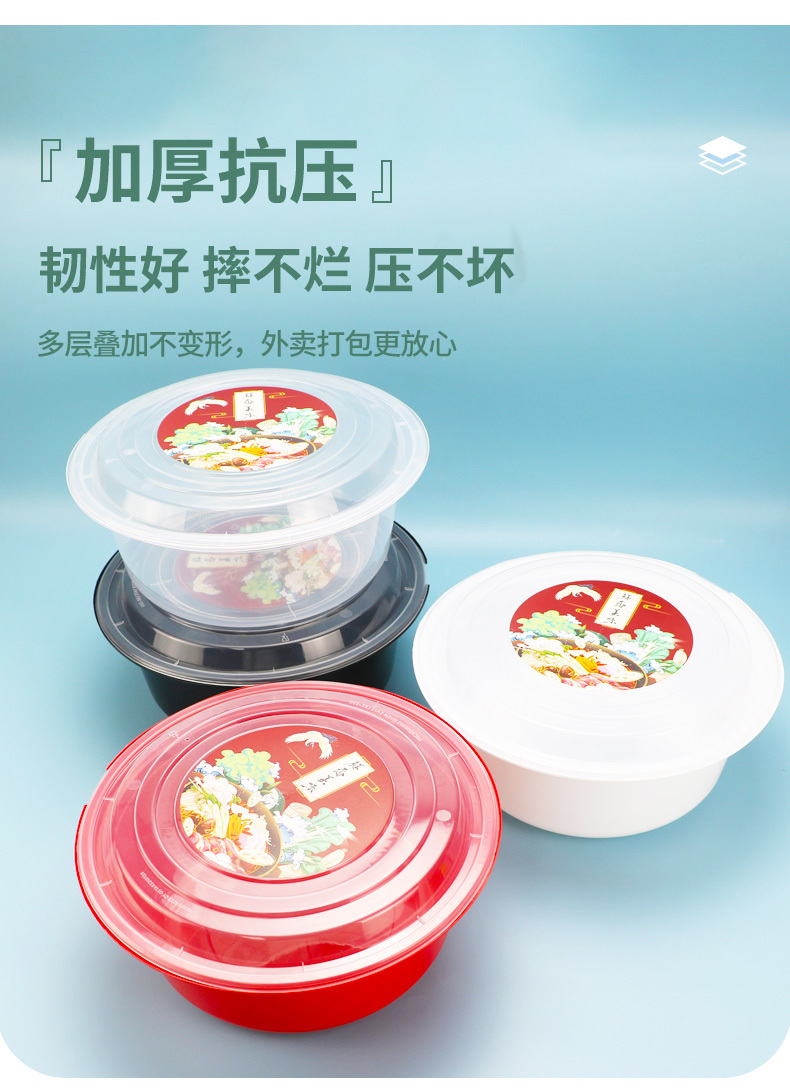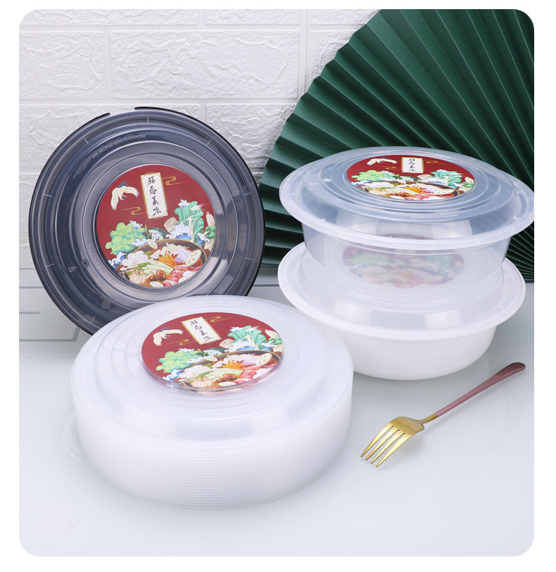一次性碗圆形加厚塑料饭碗快餐盒子外卖打包盒野餐批发