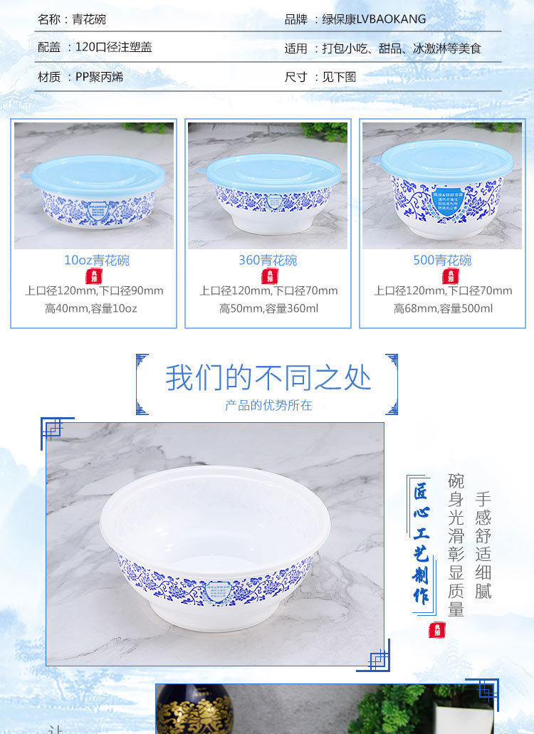 绿保康LBK-360青花碗一次性餐盒便当盒快餐外卖打包盒子加厚圆形塑料饭碗商用家用批发