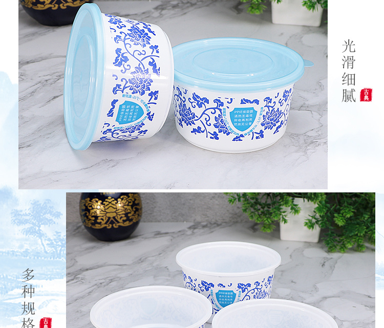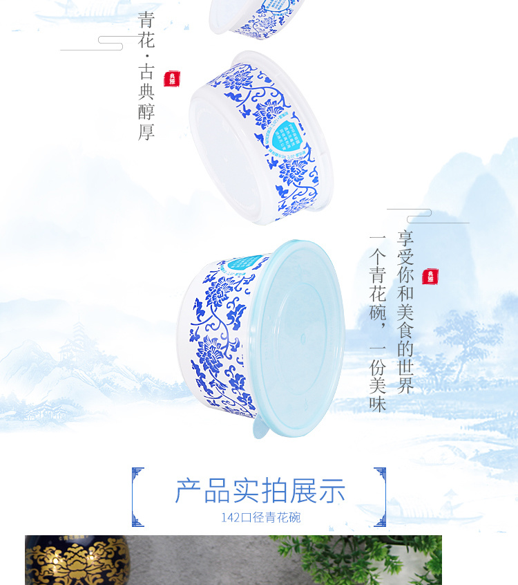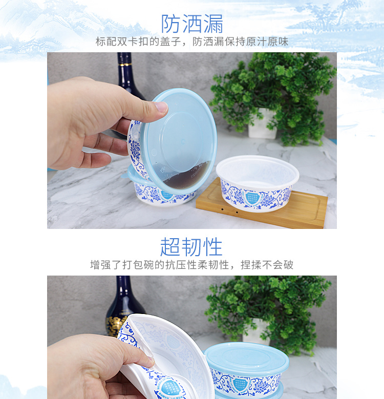 绿保康OK-12oz青花碗一次性餐盒便当盒快餐外卖打包盒子加厚圆形塑料饭碗商用家用批发