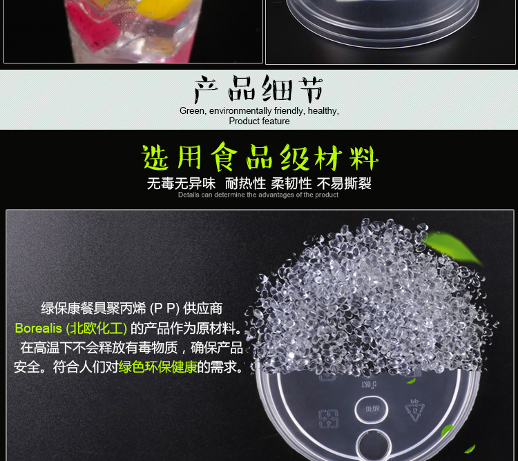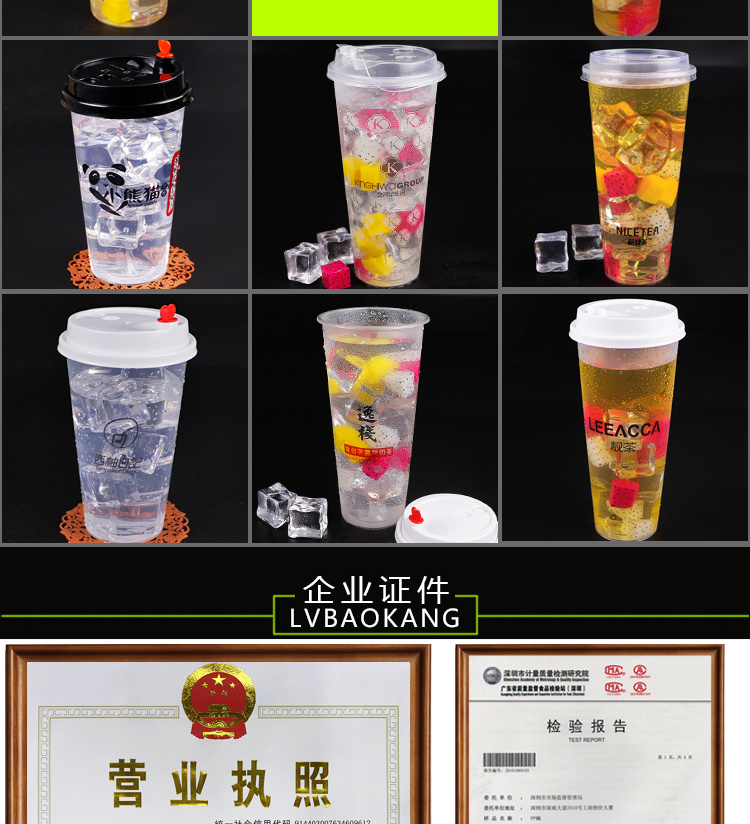 绿保康CK-250青花酸奶杯一次性pp食品级烧仙草布丁冰淇淋水果捞包装打包盒子
